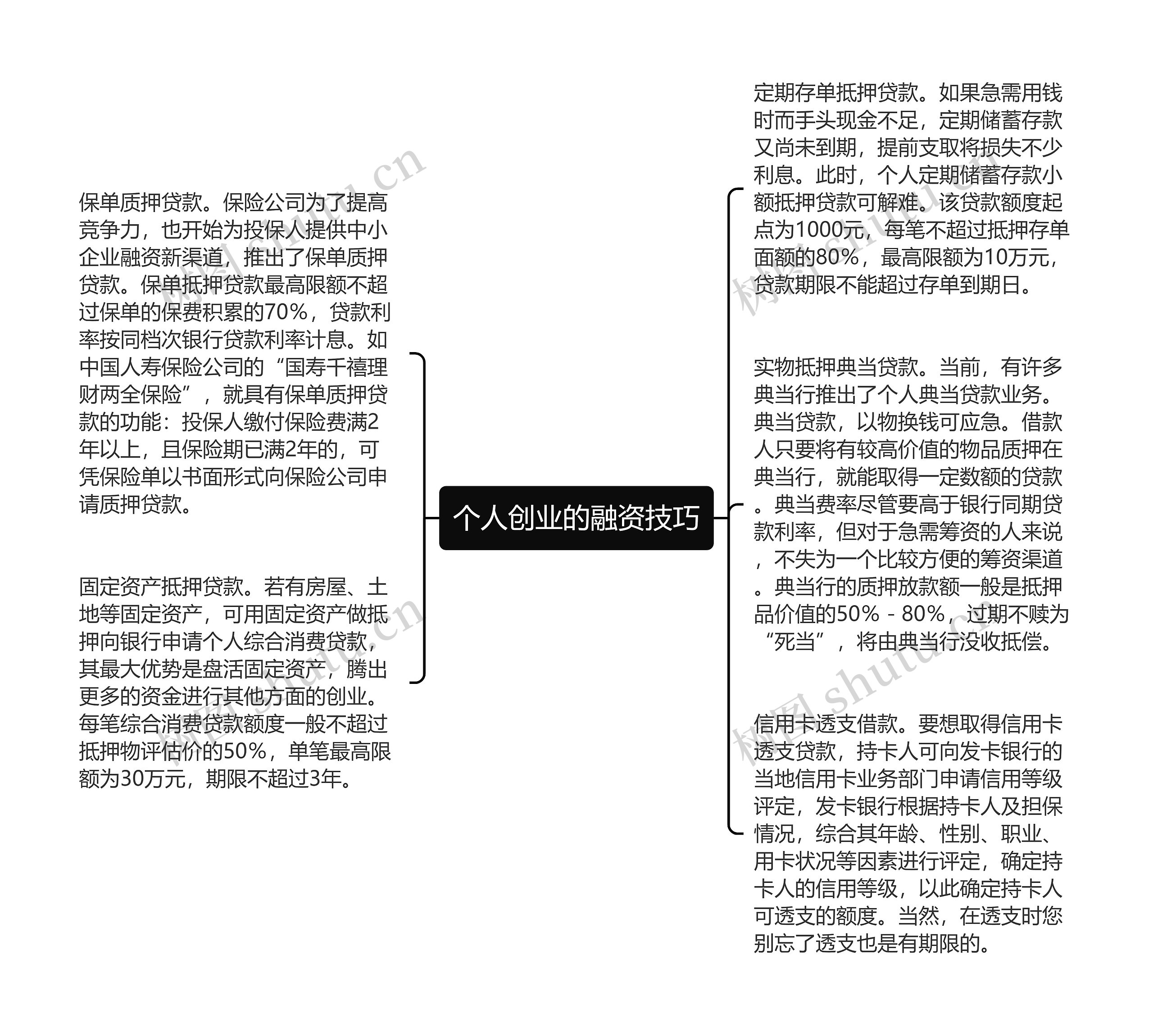 固定资产抵押贷款。若有房屋、土地等固定资产,可用固定资产做抵押向银行申请个人综合消费贷款,其最大优势是盘活固定资产,腾出更多的资金进行其他方面的创业。每笔综合消费贷款额度一般不超过抵押物评估价的50%,单笔最高限额为30万元,期限不超过3年。