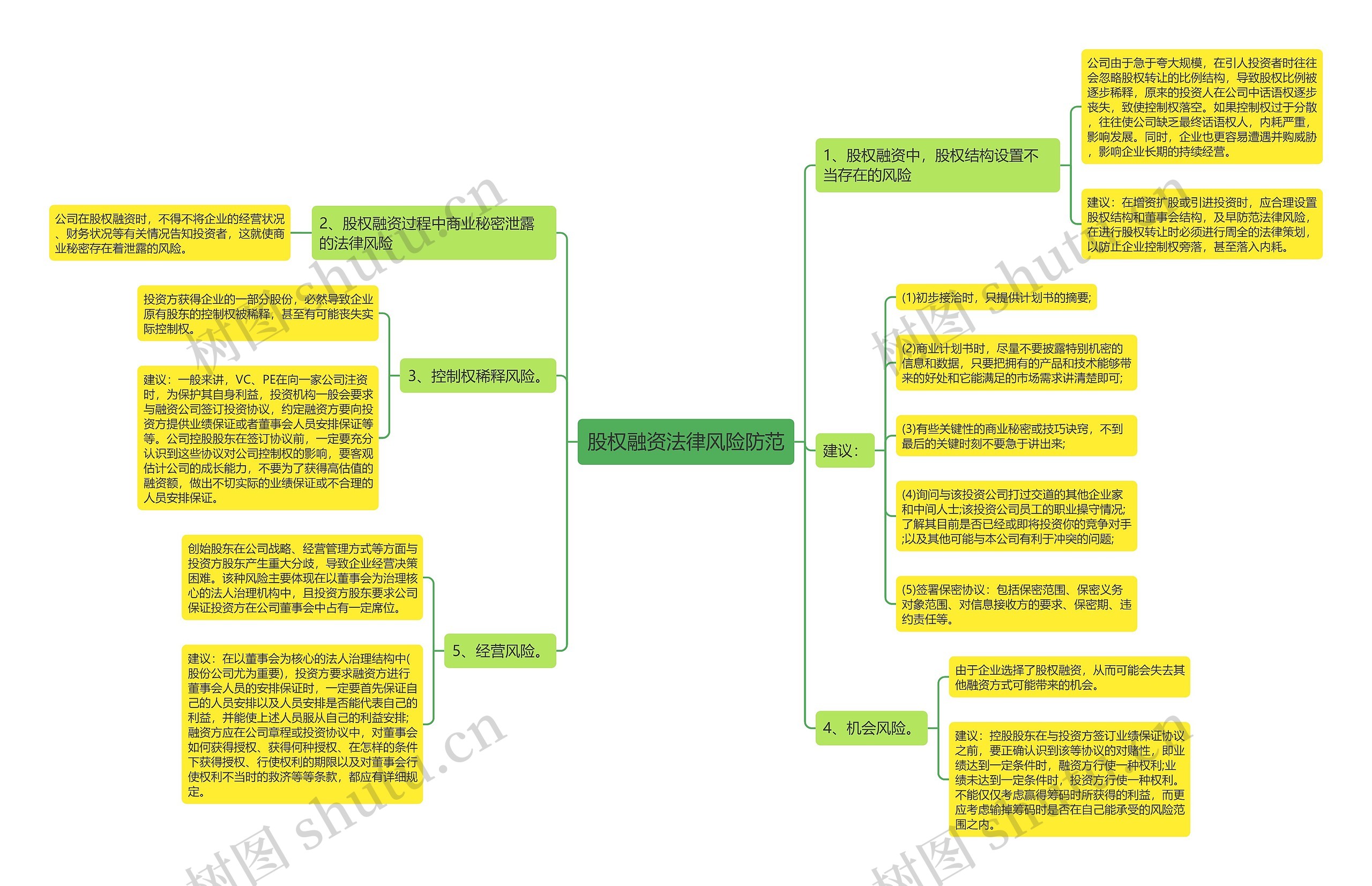 树图思维导图提供《股权融资法律风险防范》在线思维导图免费制作,点击“编辑”按钮,可对《股权融资法律风险防范》进行在线思维导图编辑,本思维导图属于思维导图模板主题,文件编号是:6e8b8f10f818d06729b197606d23e464