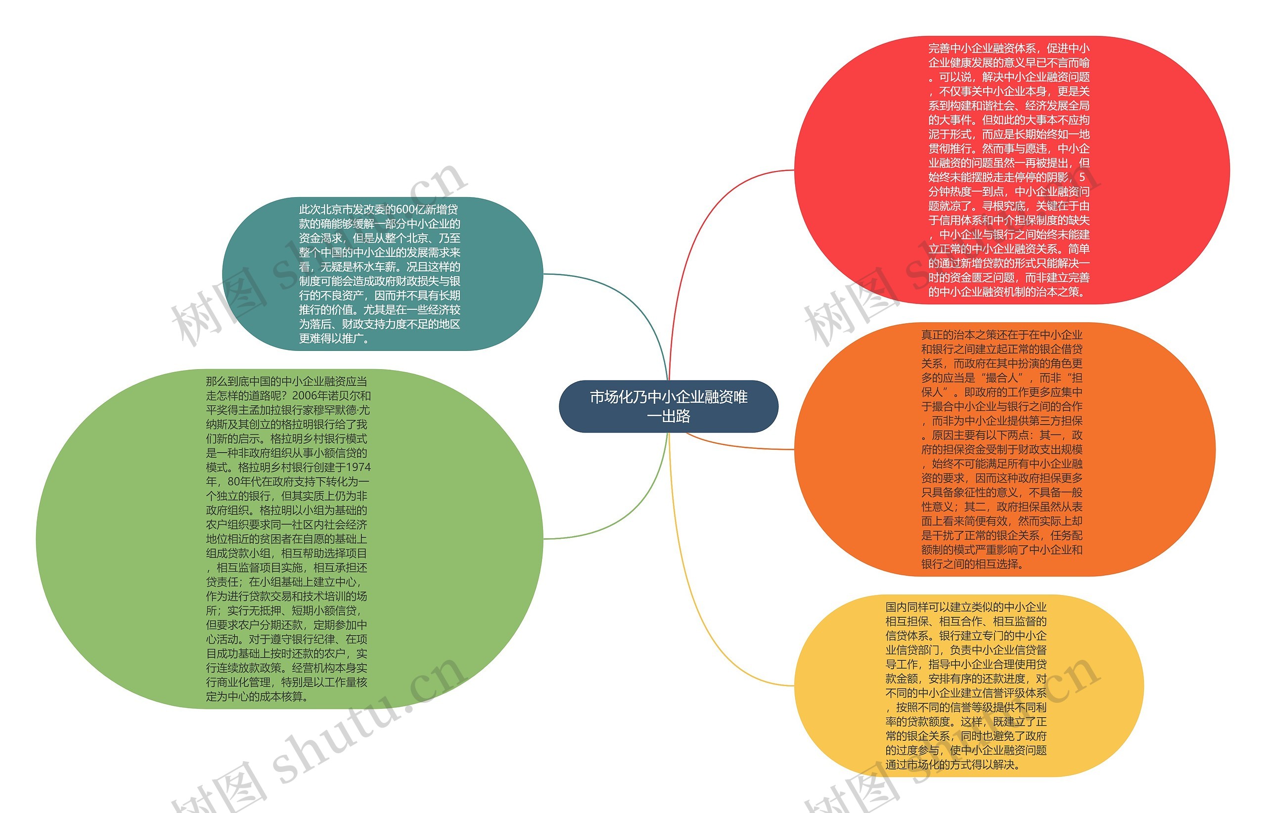 那么到底中国的中小企业融资应当走怎样的道路呢?2006年诺贝尔和平奖得主孟加拉银行家穆罕默德·尤纳斯及其创立的格拉明银行给了我们新的启示。格拉明乡村银行模式是一种非政府组织从事小额信贷的模式。格拉明乡村银行创建于1974年,80年代在政府支持下转化为一个独立的银行,但其实质上仍为非政府组织。格拉明以小组为基础的农户组织要求同一社区内社会经济地位相近的贫困者在自愿的基础上组成贷款小组,相互帮助选择项目,相互监督项目实施,相互承担还贷责任;在小组基础上建立中心,作为进行贷款交易和技术培训的场所;实行无抵押、短期小额信贷,但要求农户分期还款,定期参加中心活动。对于遵守银行纪律、在项目成功基础上按时还款的农户,实行连续放款政策。经营机构本身实行商业化管理,特别是以工作量核定为中心的成本核算。