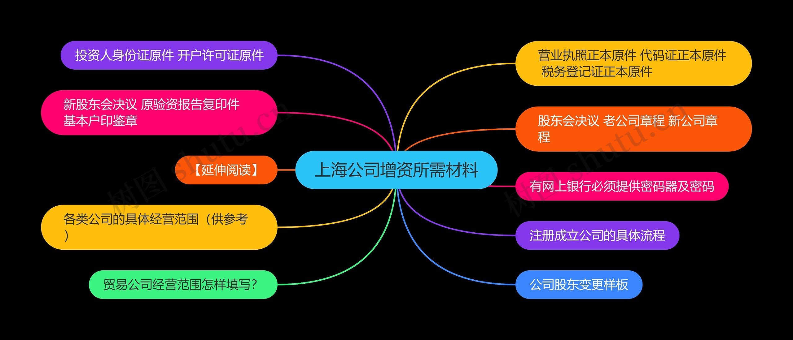 树图思维导图提供《上海公司增资所需材料》在线思维导图免费制作,点击“编辑”按钮,可对《上海公司增资所需材料》进行在线思维导图编辑,本思维导图属于思维导图模板主题,文件编号是:4fe97bc7b2b8c5c501d4e4ce4e10796f