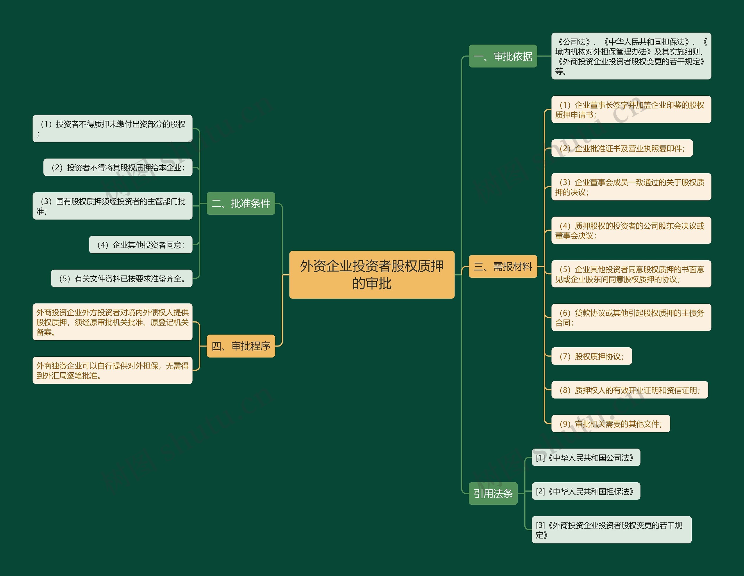树图思维导图提供《外资企业投资者股权质押的审批》在线思维导图免费制作,点击“编辑”按钮,可对《外资企业投资者股权质押的审批》进行在线思维导图编辑,本思维导图属于思维导图模板主题,文件编号是:0fe4c622a1dbe24989a662703b2d1cc1