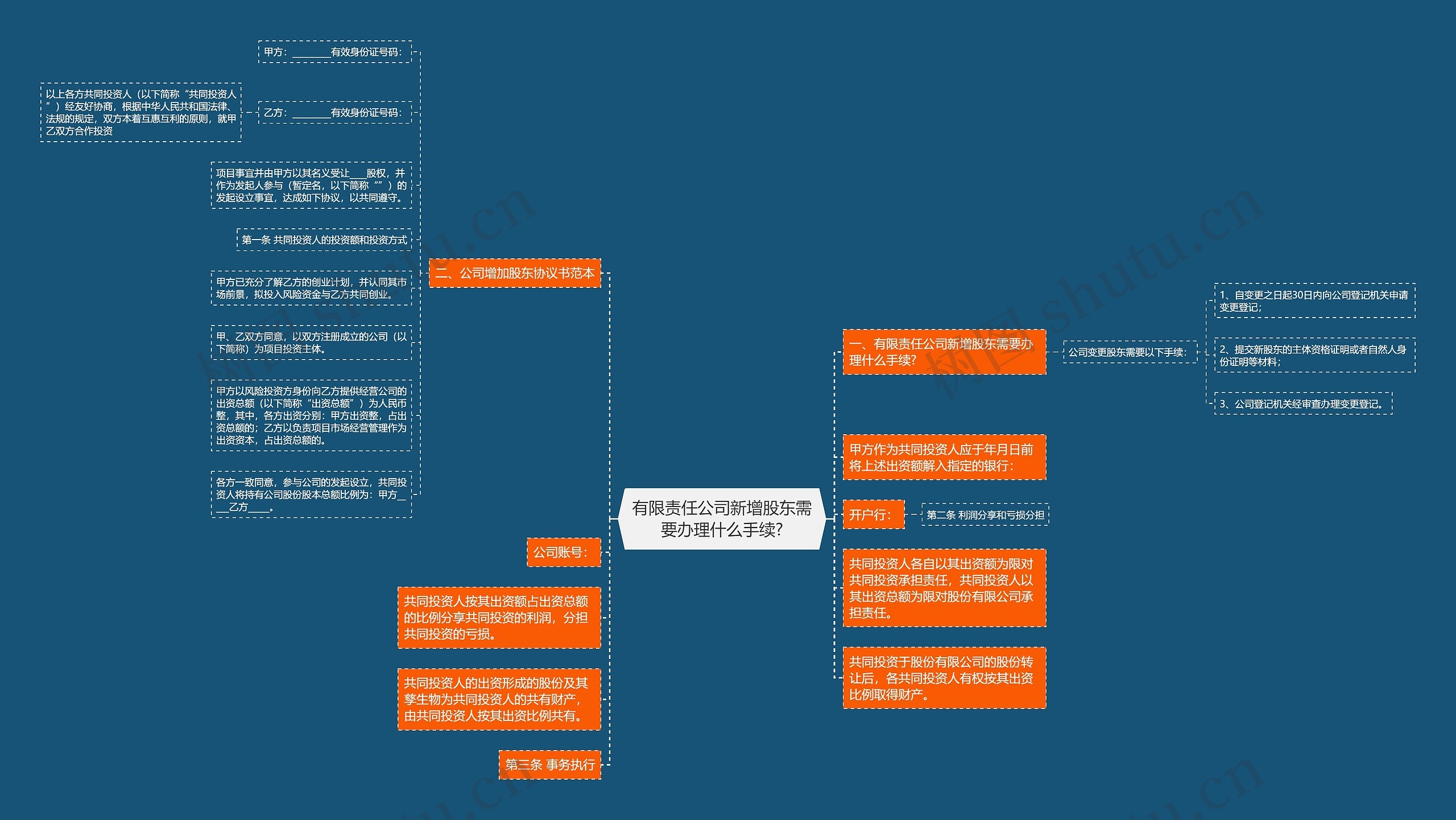 树图思维导图提供《有限责任公司新增股东需要办理什么手续?》在线思维导图免费制作,点击“编辑”按钮,可对《有限责任公司新增股东需要办理什么手续?》进行在线思维导图编辑,本思维导图属于思维导图模板主题,文件编号是:0a059b473c8c4188ed02c53f2aacb0c6