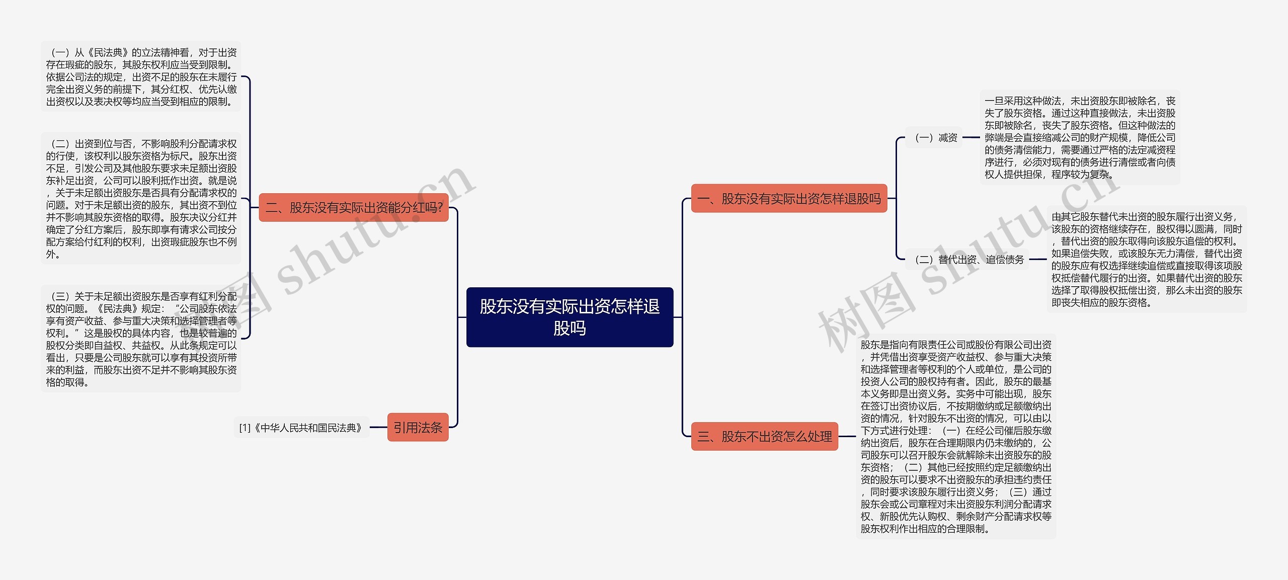 树图思维导图提供《股东没有实际出资怎样退股吗》在线思维导图免费制作,点击“编辑”按钮,可对《股东没有实际出资怎样退股吗》进行在线思维导图编辑,本思维导图属于思维导图模板主题,文件编号是:1b51999f01dc5af8c76f62341a2ebe0b