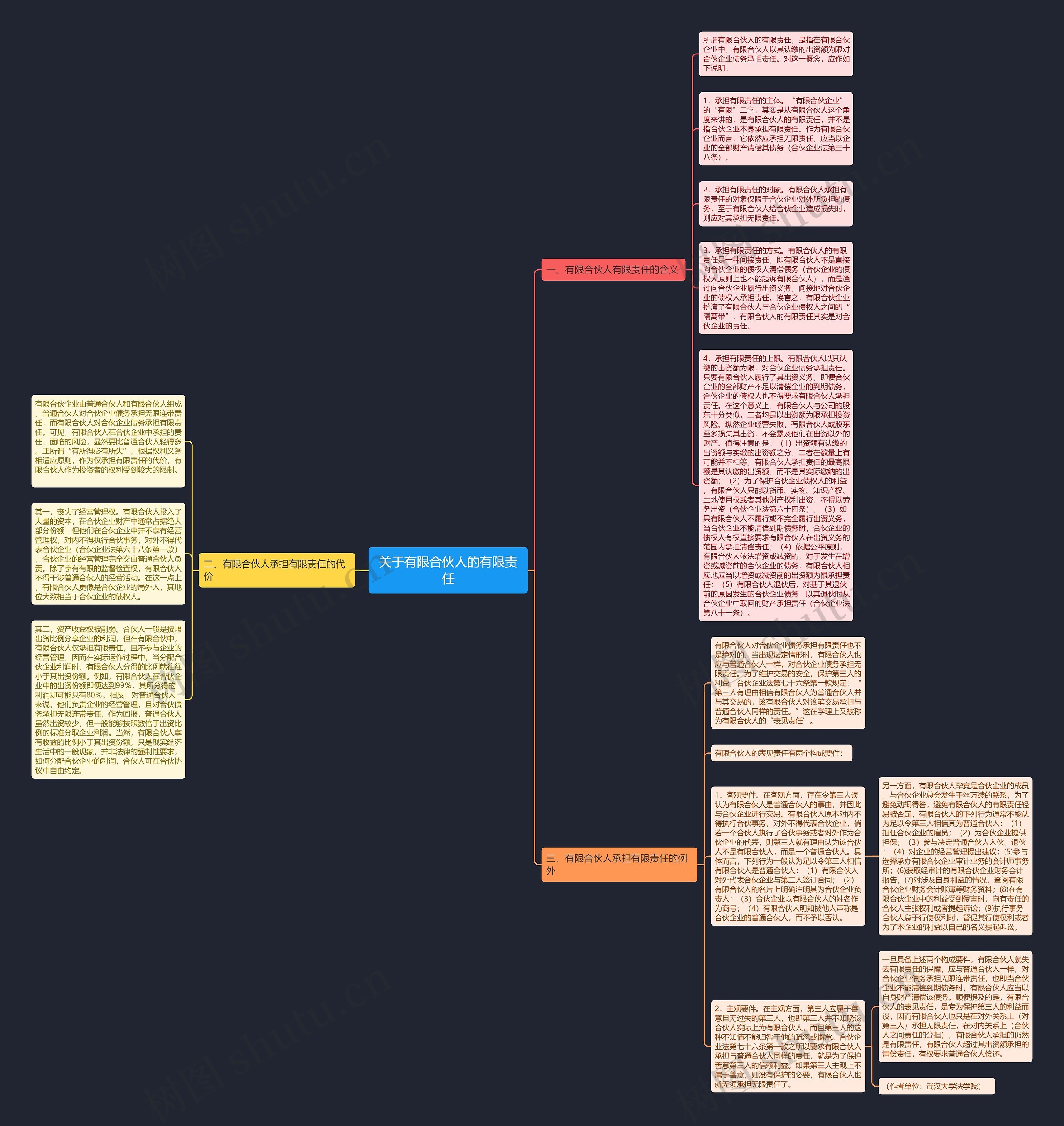 1.承担有限责任的主体。“有限合伙企业”的“有限”二字,其实是从有限合伙人这个角度来讲的,是有限合伙人的有限责任,并不是指合伙企业本身承担有限责任。作为有限合伙企业而言,它依然应承担无限责任,应当以企业的全部财产清偿其债务(合伙企业法第三十八条)。