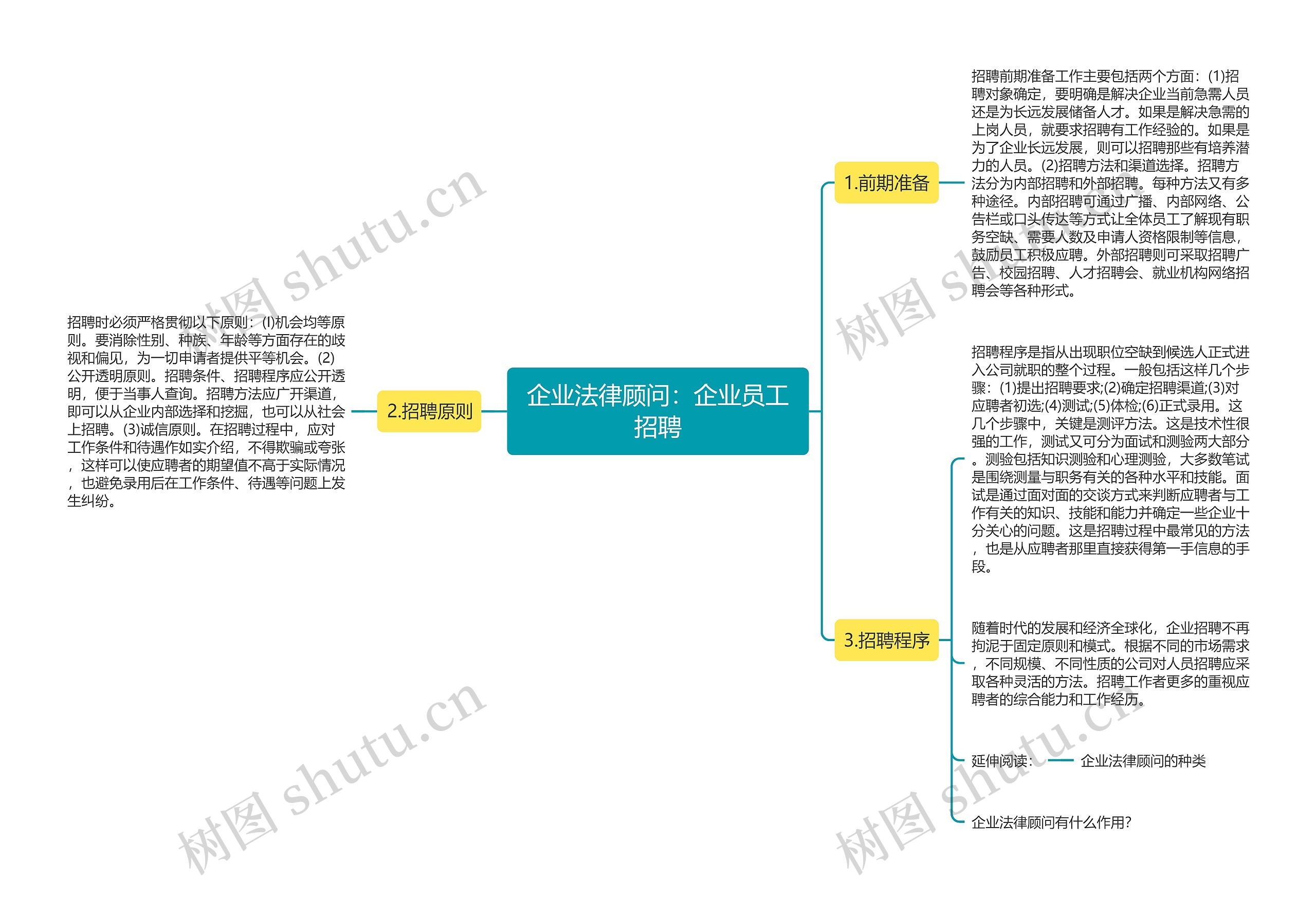 树图思维导图提供《企业法律顾问:企业员工招聘》在线思维导图免费制作,点击“编辑”按钮,可对《企业法律顾问:企业员工招聘》进行在线思维导图编辑,本思维导图属于思维导图模板主题,文件编号是:12b84f3e1ba9e425efcd2da2f1deba5b