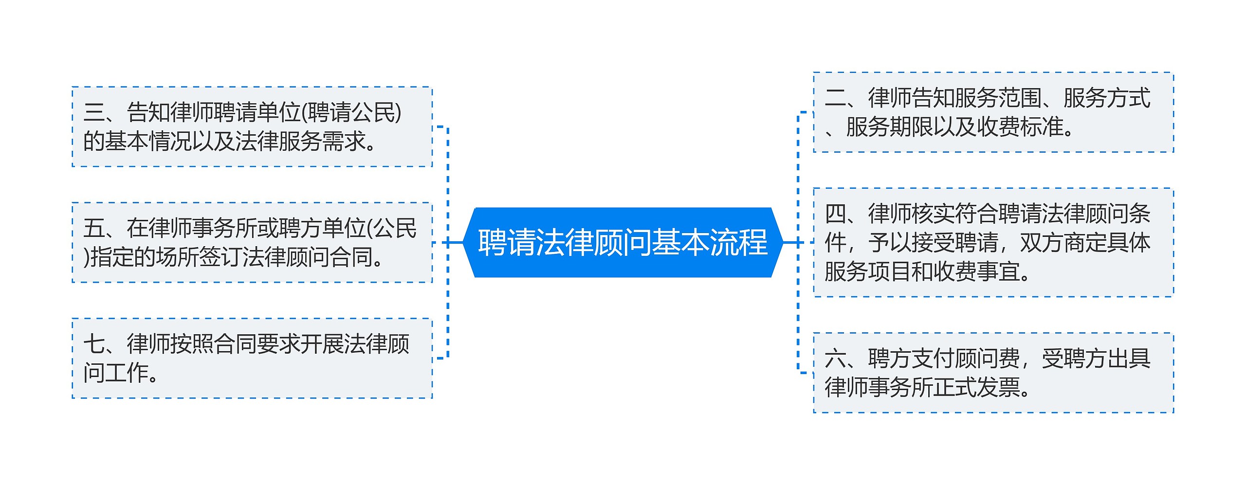 树图思维导图提供《聘请法律顾问基本流程》在线思维导图免费制作,点击“编辑”按钮,可对《聘请法律顾问基本流程》进行在线思维导图编辑,本思维导图属于思维导图模板主题,文件编号是:ebe5743976fcea37d68770ce529ebfd6