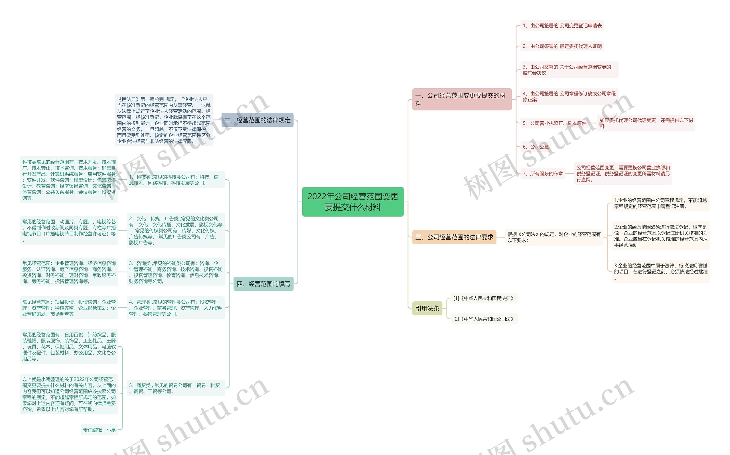 以上就是小编整理的关于2022年公司经营范围变更要提交什么材料的有关内容,从上面的内容我们可以知道公司经营范围应该按照公司章程的规定,不能超越章程所规定的范围。如果您对上述内容还有疑问,可在线向律师免费咨询,希望以上内容对您有所帮助。