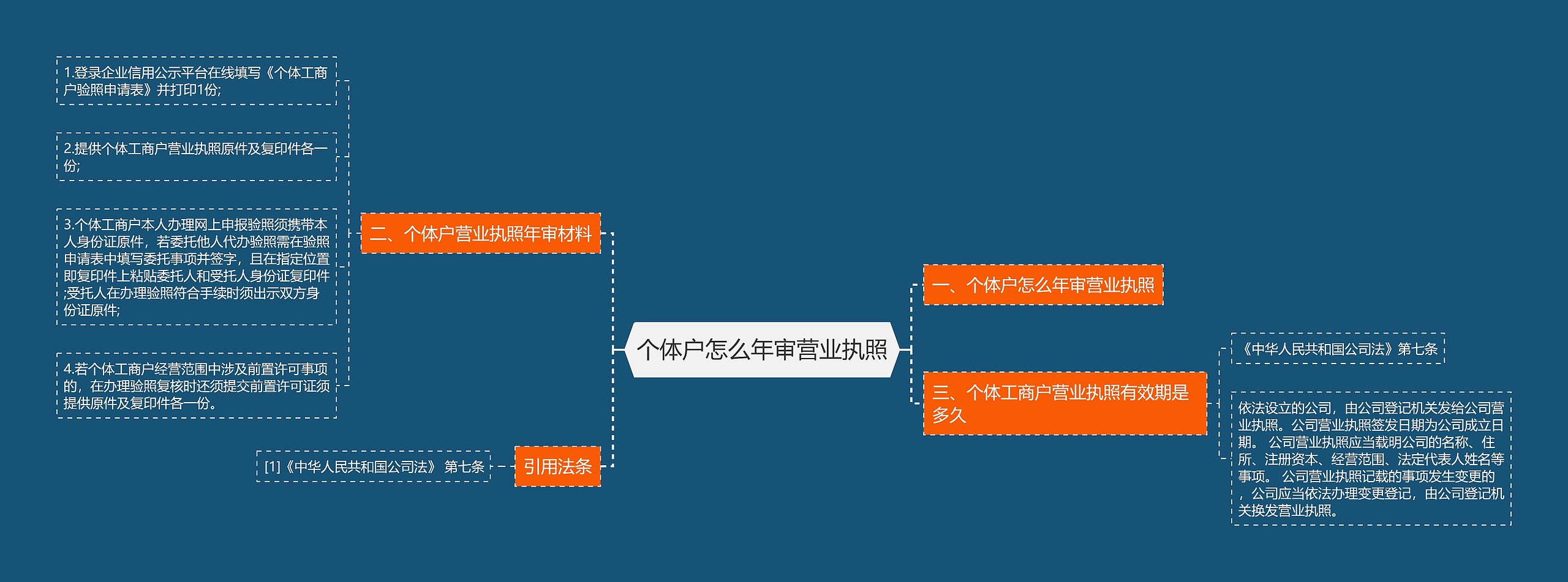 树图思维导图提供《个体户怎么年审营业执照》在线思维导图免费制作,点击“编辑”按钮,可对《个体户怎么年审营业执照》进行在线思维导图编辑,本思维导图属于思维导图模板主题,文件编号是:b3eb8437e502dd0d2287a3c47e4c5f21