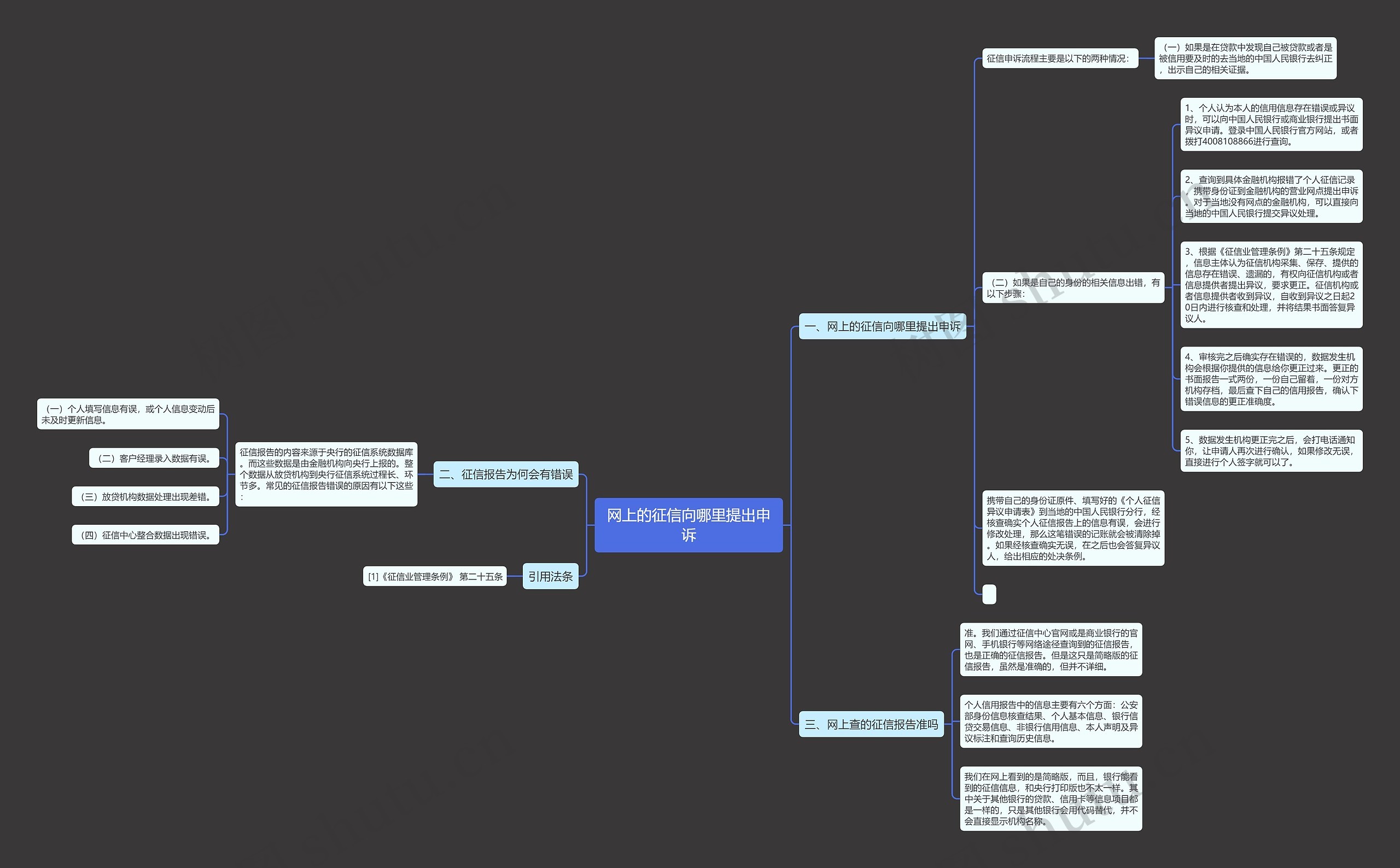 树图思维导图提供《网上的征信向哪里提出申诉》在线思维导图免费制作,点击“编辑”按钮,可对《网上的征信向哪里提出申诉》进行在线思维导图编辑,本思维导图属于思维导图模板主题,文件编号是:548137efd8ba13f6dc86a10ae1aef10a