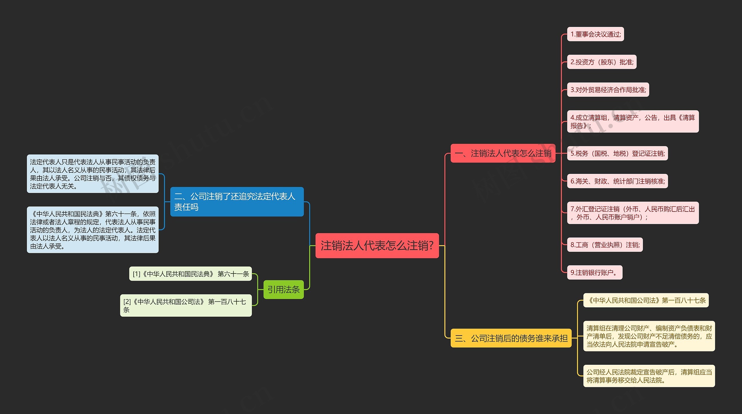 树图思维导图提供《注销法人代表怎么注销?》在线思维导图免费制作,点击“编辑”按钮,可对《注销法人代表怎么注销?》进行在线思维导图编辑,本思维导图属于思维导图模板主题,文件编号是:d77552afd762f7ba0cd5a8a797979943