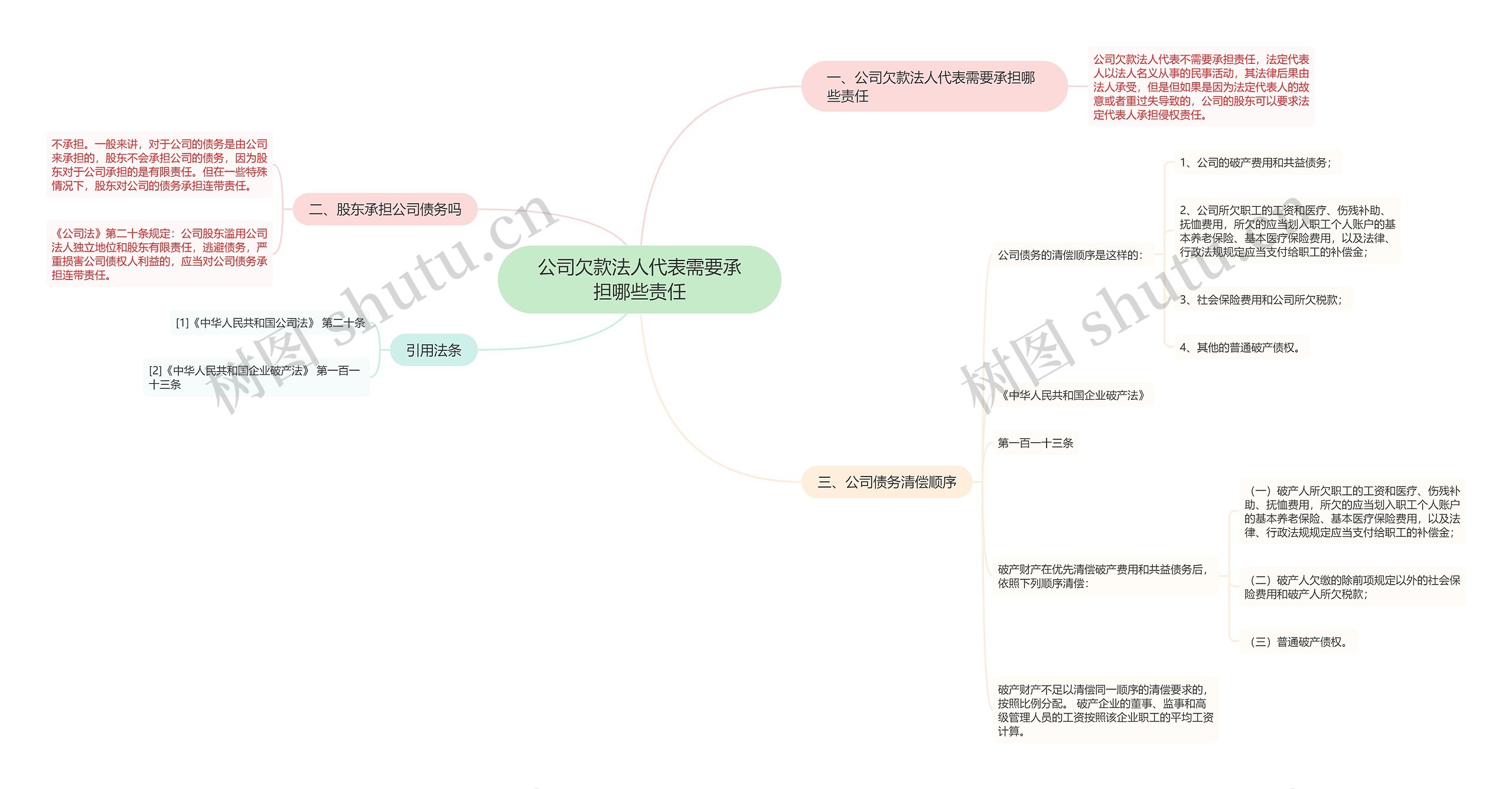 树图思维导图提供《公司欠款法人代表需要承担哪些责任》在线思维导图免费制作,点击“编辑”按钮,可对《公司欠款法人代表需要承担哪些责任》进行在线思维导图编辑,本思维导图属于思维导图模板主题,文件编号是:6cec894df398ae787a2a4cff8448f624