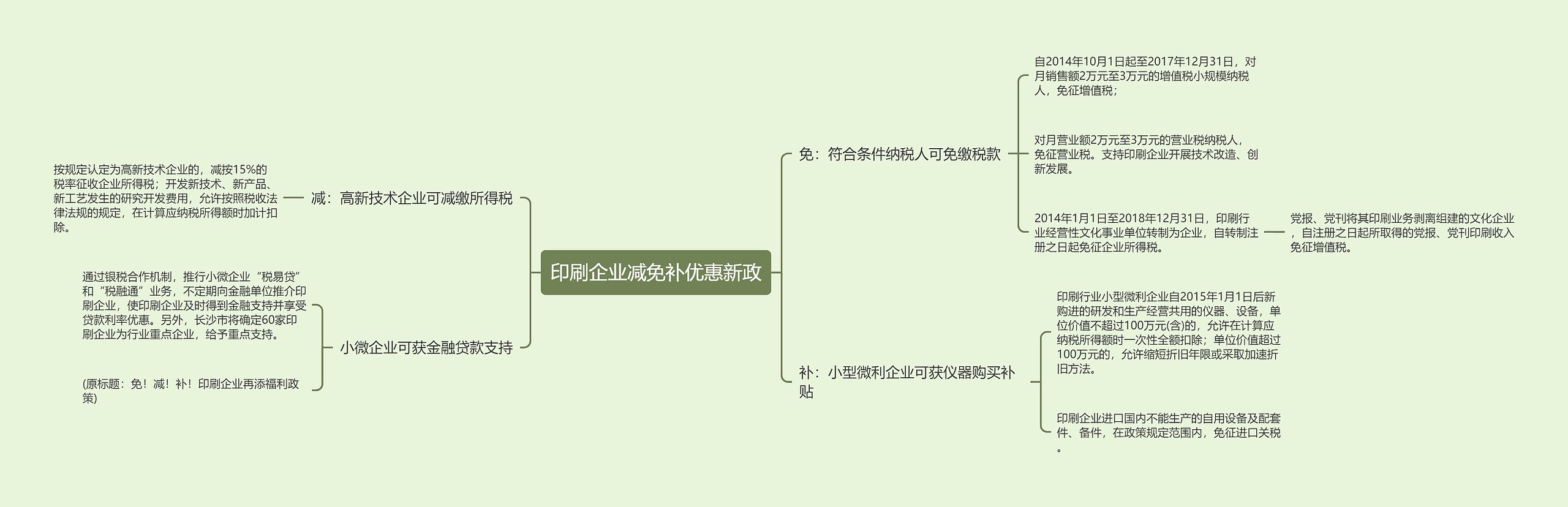 树图思维导图提供《印刷企业减免补优惠新政》在线思维导图免费制作,点击“编辑”按钮,可对《印刷企业减免补优惠新政》进行在线思维导图编辑,本思维导图属于思维导图模板主题,文件编号是:ba5c1f3b1ed547149e48d5fbf5c2d8dc