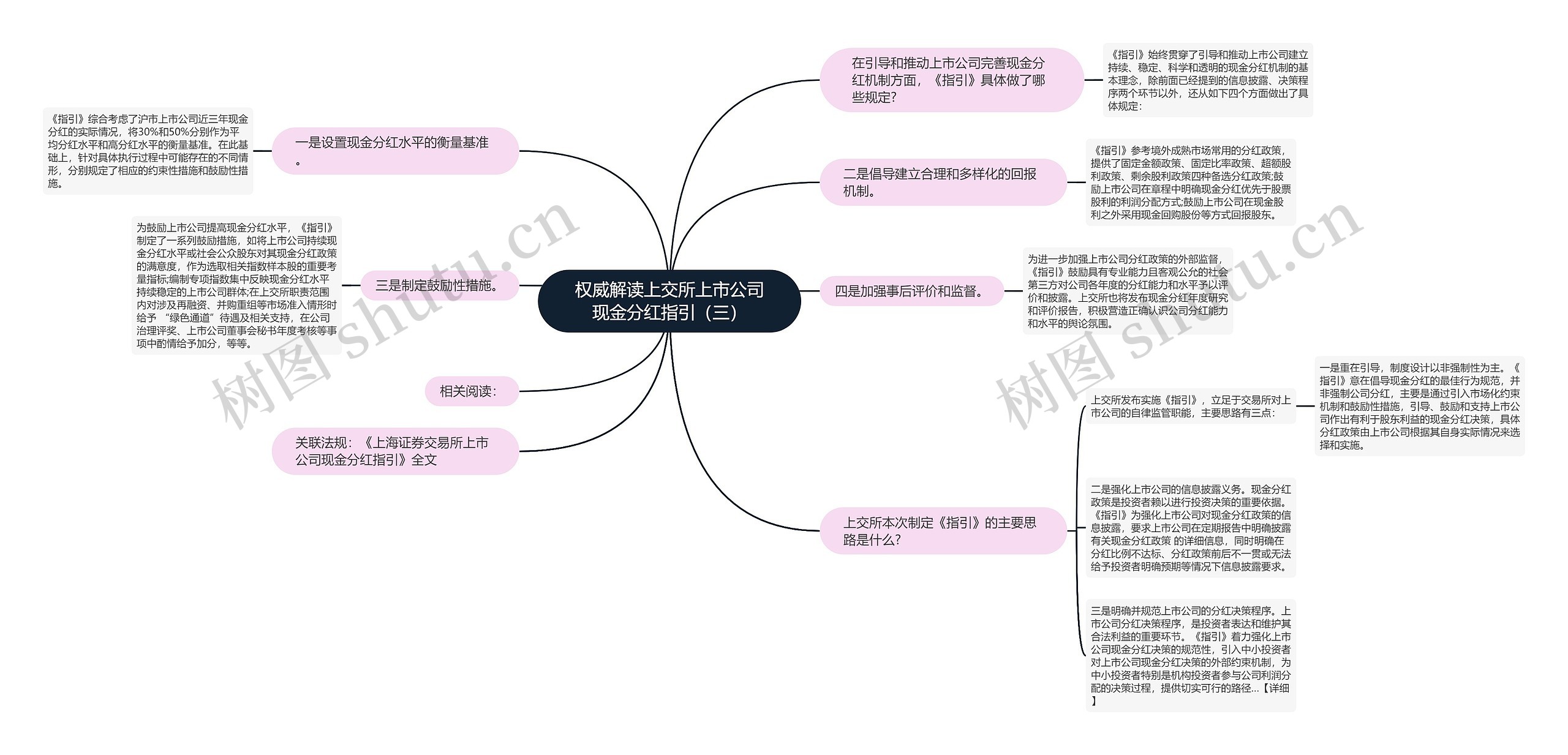 核心提示:本文为您提供权威解读上海证券交易所上市公司现金分红指引(三),该指引在引导和推动上市公司完善现金分红机制方面有哪些具体的规定呢?详细内容请阅读全文,这是由树图网为您收集整理,仅供学习参考!