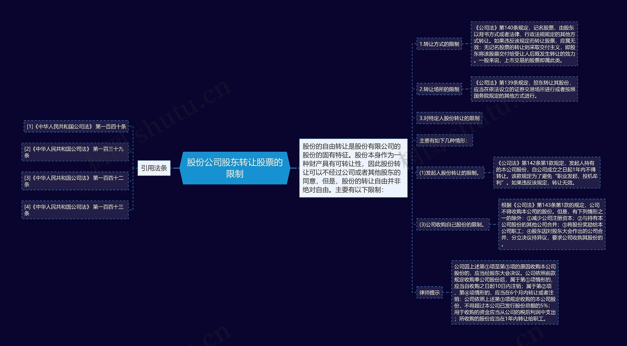 树图思维导图提供《股份公司股东转让股票的限制》在线思维导图免费制作,点击“编辑”按钮,可对《股份公司股东转让股票的限制》进行在线思维导图编辑,本思维导图属于思维导图模板主题,文件编号是:a06c4a245831431f8799158cd353105c