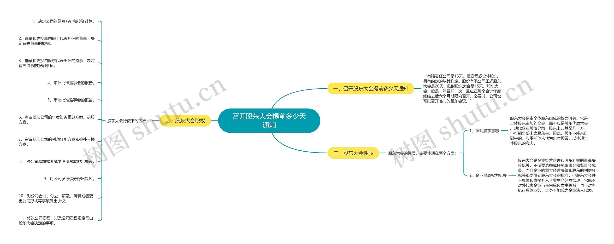 树图思维导图提供《召开股东大会提前多少天通知》在线思维导图免费制作,点击“编辑”按钮,可对《召开股东大会提前多少天通知》进行在线思维导图编辑,本思维导图属于思维导图模板主题,文件编号是:7c6c5e8966faaa5990db5da1177d4f4b