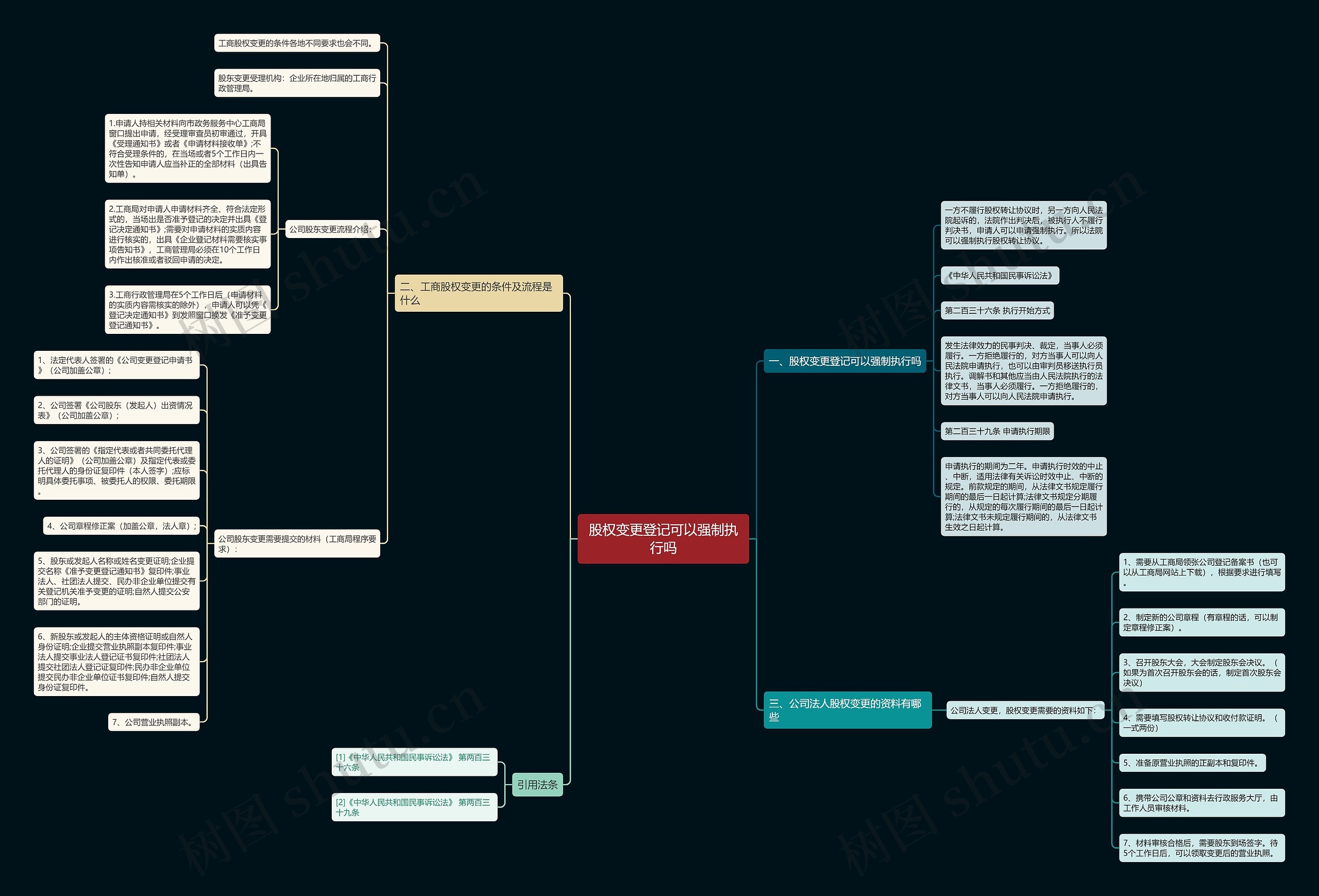 树图思维导图提供《股权变更登记可以强制执行吗》在线思维导图免费制作,点击“编辑”按钮,可对《股权变更登记可以强制执行吗》进行在线思维导图编辑,本思维导图属于思维导图模板主题,文件编号是:6d06a77431f88315c766dd0be4fcb46a