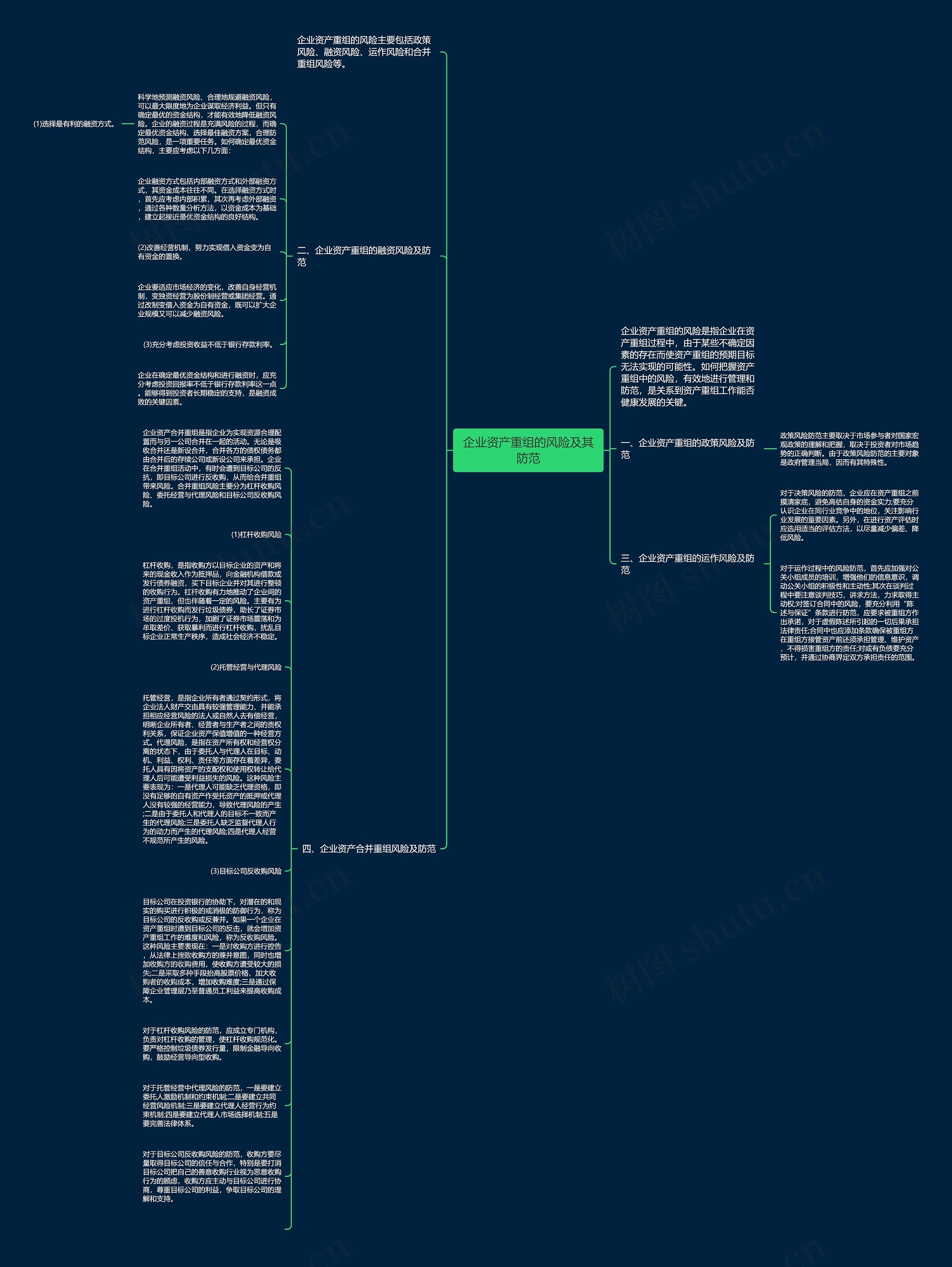 企业资产合并重组是指企业为实现资源合理配置而与另一公司合并在一起的活动。无论是吸收合并还是新设合并,合并各方的债权债务都由合并后的存续公司或新设公司来承担。企业在合并重组活动中,有时会遭到目标公司的反抗,即目标公司进行反收购,从而给合并重组带来风险。合并重组风险主要分为杠杆收购风险、委托经营与代理风险和目标公司反收购风险。