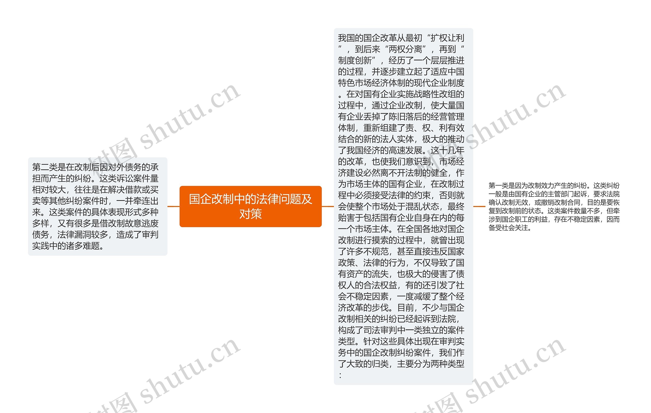 我国的国企改革从最初“扩权让利”,到后来“两权分离”,再到“制度创新”,经历了一个层层推进的过程,并逐步建立起了适应中国特色市场经济体制的现代企业制度。在对国有企业实施战略性改组的过程中,通过企业改制,使大量国有企业丢掉了陈旧落后的经营管理体制,重新组建了责、权、利有效结合的新的法人实体,极大的推动了我国经济的高速发展。这十几年的改革,也使我们意识到,市场经济建设必然离不开法制的健全,作为市场主体的国有企业,在改制过程中必须接受法律的约束,否则就会使整个市场处于混乱状态,最终贻害于包括国有企业自身在内的每一个市场主体。在全国各地对国企改制进行摸索的过程中,就曾出现了许多不规范,甚至直接违反国家政策、法律的行为,不仅导致了国有资产的流失,也极大的侵害了债权人的合法权益,有的还引发了社会不稳定因素,一度减缓了整个经济改革的步伐。目前,不少与国企改制相关的纠纷已经起诉到法院,构成了司法审判中一类独立的案件类型。针对这些具体出现在审判实务中的国企改制纠纷案件,我们作了大致的归类,主要分为两种类型:
