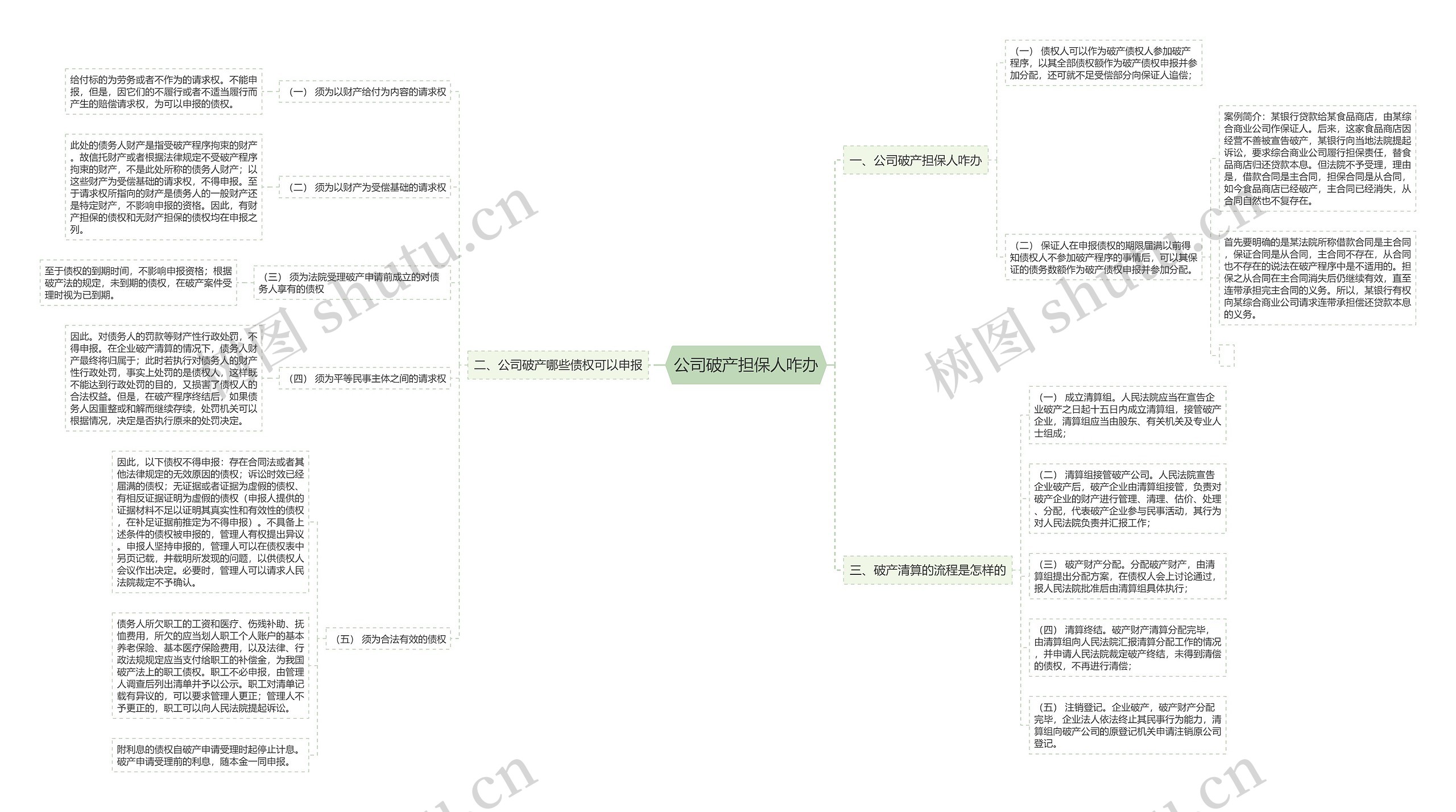 树图思维导图提供《公司破产担保人咋办》在线思维导图免费制作,点击“编辑”按钮,可对《公司破产担保人咋办》进行在线思维导图编辑,本思维导图属于思维导图模板主题,文件编号是:cbe9d8a952b0da423a629ccc98931275