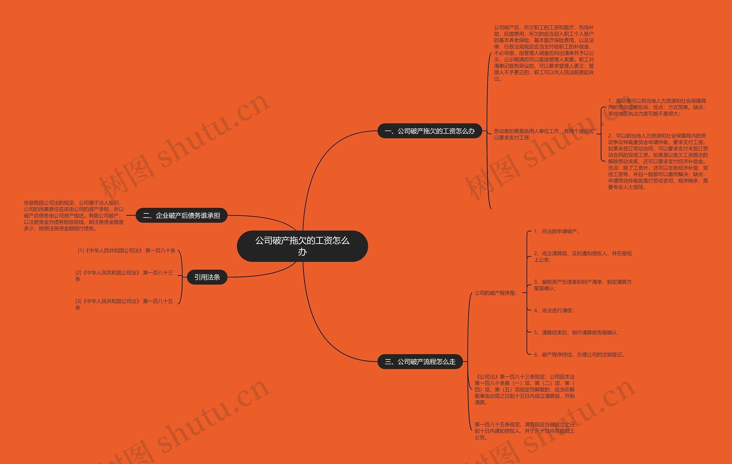 树图思维导图提供《公司破产拖欠的工资怎么办》在线思维导图免费制作,点击“编辑”按钮,可对《公司破产拖欠的工资怎么办》进行在线思维导图编辑,本思维导图属于思维导图模板主题,文件编号是:ef83fc164ec540b366aa114c3fe4c553