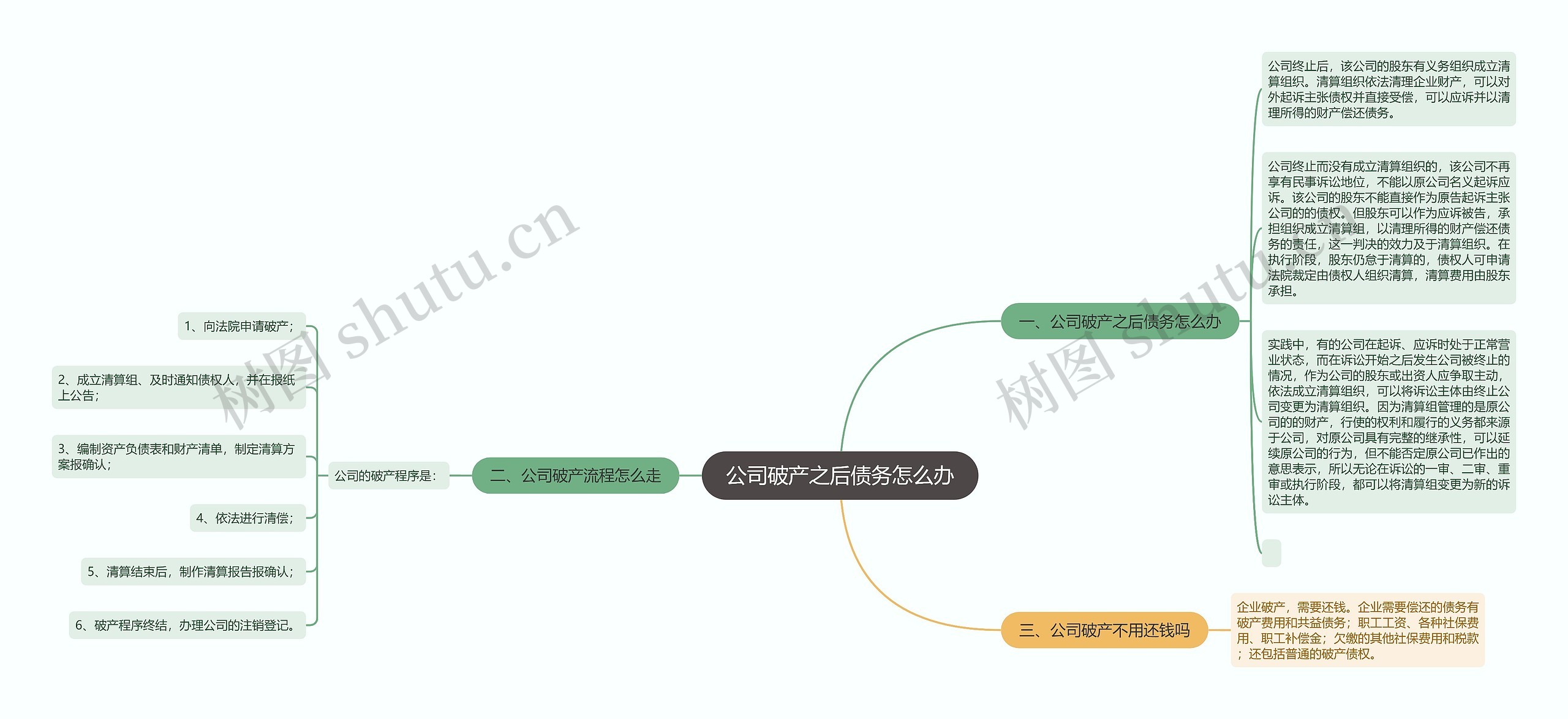 树图思维导图提供《公司破产之后债务怎么办》在线思维导图免费制作,点击“编辑”按钮,可对《公司破产之后债务怎么办》进行在线思维导图编辑,本思维导图属于思维导图模板主题,文件编号是:f10b536adf6c88cbb516adab3f6cf93d