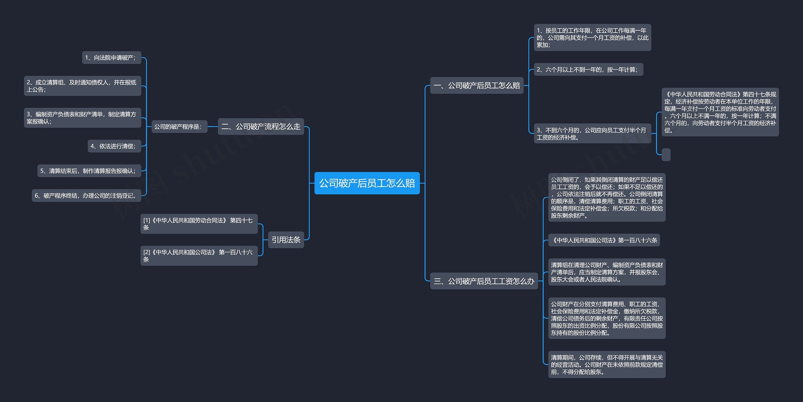 树图思维导图提供《公司破产后员工怎么赔》在线思维导图免费制作,点击“编辑”按钮,可对《公司破产后员工怎么赔》进行在线思维导图编辑,本思维导图属于思维导图模板主题,文件编号是:11a35e2036ecdf2131fe593853d4e6cb