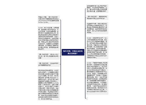 其实,马光远对于一些企业高调去海外并购的疑虑,并不是杞人忧天。毕竟,中国企业的海外并购金额和那些动不动上百亿美元的大手笔比起来,还是小了很多,更重要的是,我们可以通过不少案例发现,中国企业在海外并购的操作过程中,经验还显得比较单薄,冒然出手的结果可能会得不偿失。