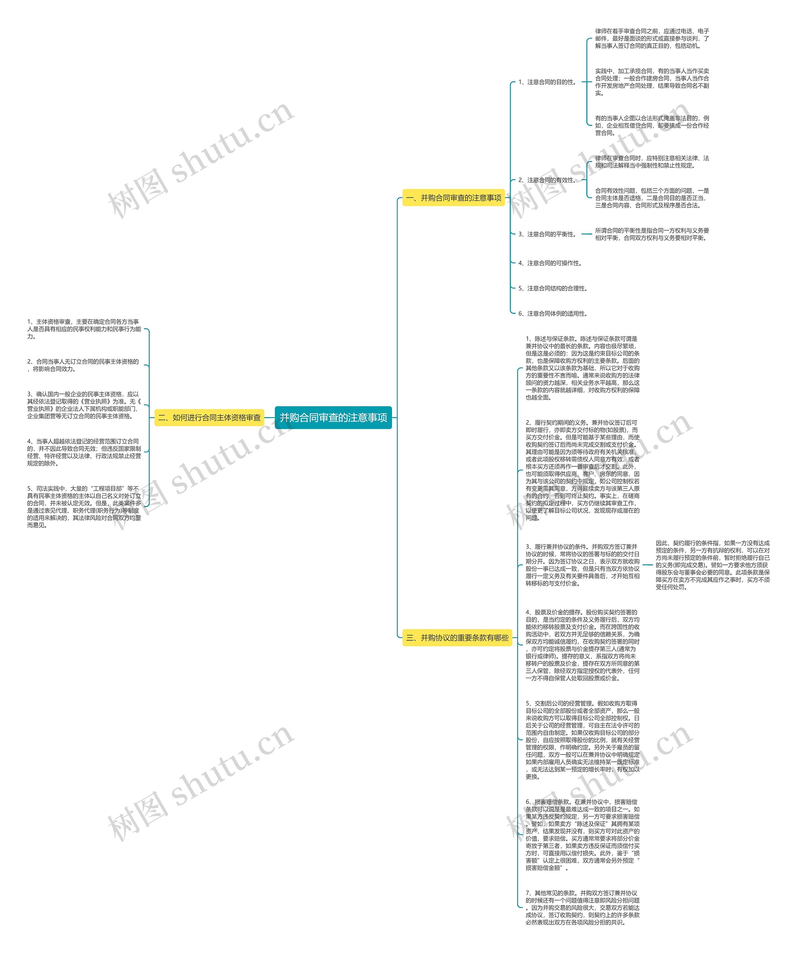 1、陈述与保证条款。陈述与保证条款可谓是兼并协议中的最长的条款。内容也极尽繁琐,但是这是必须的:因为这是约束目标公司的条款,也是保障收购方权利的主要条款。后面的其他条款又以该条款为基础,所以它对于收购方的重要性不言而喻。通常来说收购方的法律顾问的资力越深,相关业务水平越高,那么这一条款的内容就越详细,对收购方权利的保障也越全面。