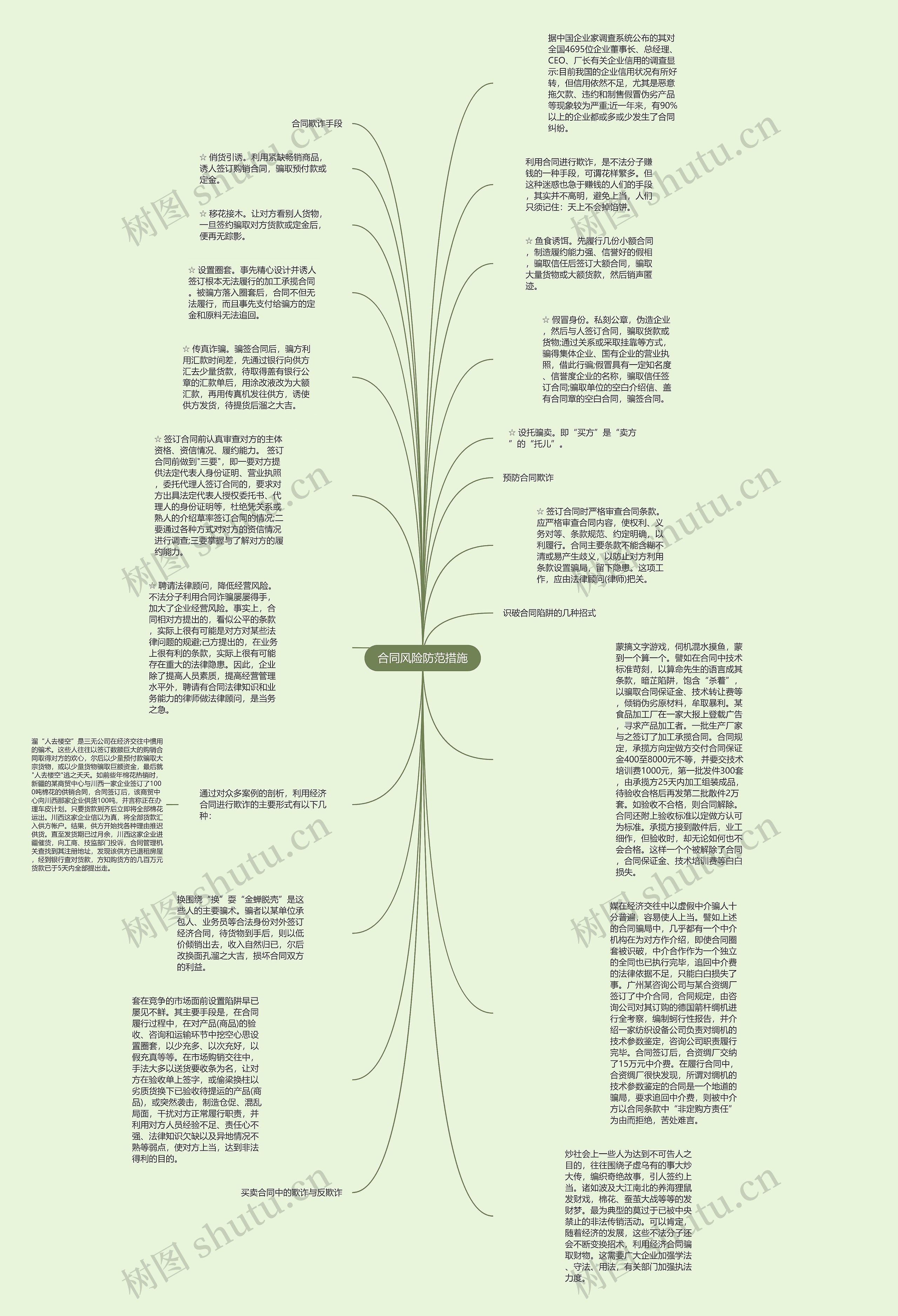 蒙搞文字游戏,伺机混水摸鱼,蒙到一个算一个。譬如在合同中技术标准苛刻,以算命先生的语言成其条款,暗芷陷阱,饱含“杀着”,以骗取合同保证金、技术转让费等,倾销伪劣原材料,牟取暴利。某食品加工厂在一家大报上登载广告,寻求产品加工者。一批生产厂家与之签订了加工承揽合同。合同规定,承揽方向定做方交付合同保证金400至8000元不等,并要交技术培训费1000元,第一批发件300套,由承揽方25天内加工组装成品,待验收合格后再发第二批散件2万套。如验收不合格,则合同解除。合同还附上验收标准以定做方认可为标准。承揽方接到散件后,业工细作,但验收时,却无论如何也不会合格。这样一个个被解除了合同,合同保证金、技术培训费等白白损失。