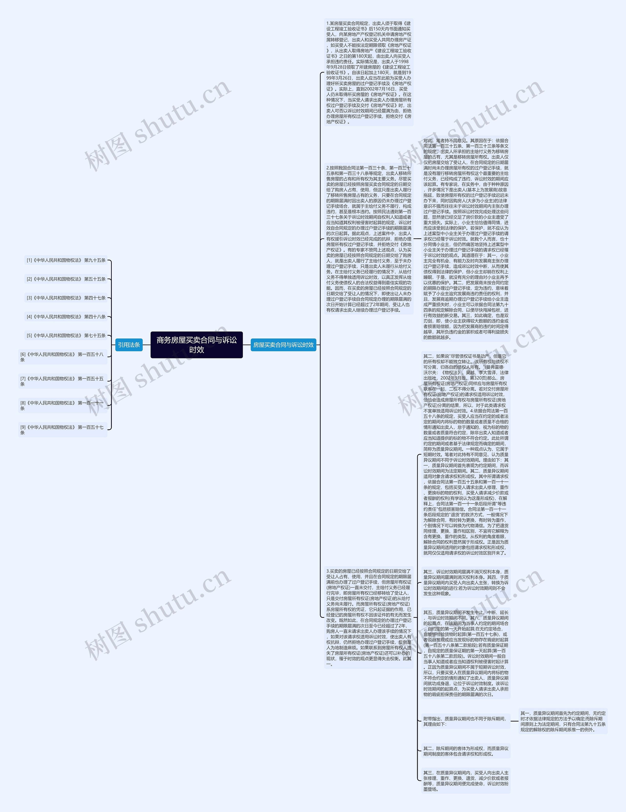 其二,如果说"尽管债权证书是动产,但是它的所有权却不能独立转让。该所有权与债权不可分离,归各自的债权人所有。"(曼弗雷德·沃尔夫:《物权法》,吴越、李大雪译,法律出版社,2002年9月版,第320页)那么,房屋所有权证(房地产权证)同样应与房屋所有权联系在一起,二权不得分离。若对交付房屋所有权证(房地产权证)的请求权适用诉讼时效,恰恰会造成房屋所有权与房屋所有权证(房地产权证)分离的结果,所以,对于此类请求权不宜单独适用诉讼时效。4.依据合同法第一百五十八条的规定,买受人应当在约定的或者法定的期间内将标的物的数量或者质量不合格的情形通知出卖人,怠于通知的,视为标的物的数量或者质量符合约定,除非出卖人知道或者应当知道提供的标的物不符合约定。此处所谓约定的期间或者基于法律规定而确定的期间,简称为质量异议期间。一种观点认为,它属于短期时效。笔者对此持有不同意见,认为质量异议期间不同于诉讼时效期间。理由如下:其一,质量异议期间首先表现为约定期间,而诉讼时效期间为法定期间。其二,质量异议期间适用对象含请求权和形成权。其中所谓请求权,依据合同法第一百五十五条和第一百一十一条的规定,包括买受人请求出卖人修理、重作、更换标的物的权利,买受人请求减少价款或者报酬的权利(有学说认为这是形成权),在解释上,合同法第一百一十一条后段所谓"等违约责任"包括损害赔偿。合同法第一百一十一条后段规定的"退货"的救济方式,一般情况下为解除合同,有时转为更换,有时转为重作,个别情况下可以转换为代物清偿。为了把退货同修理、更换、重作相区别,不宜将它解释为含有更换、重作的类型。从权利的角度着眼,解除合同的权利显然属于形成权。正是因为质量异议期间适用的对象包括请求权和形成权,就同仅仅适用请求权的诉讼时效区别开来了。