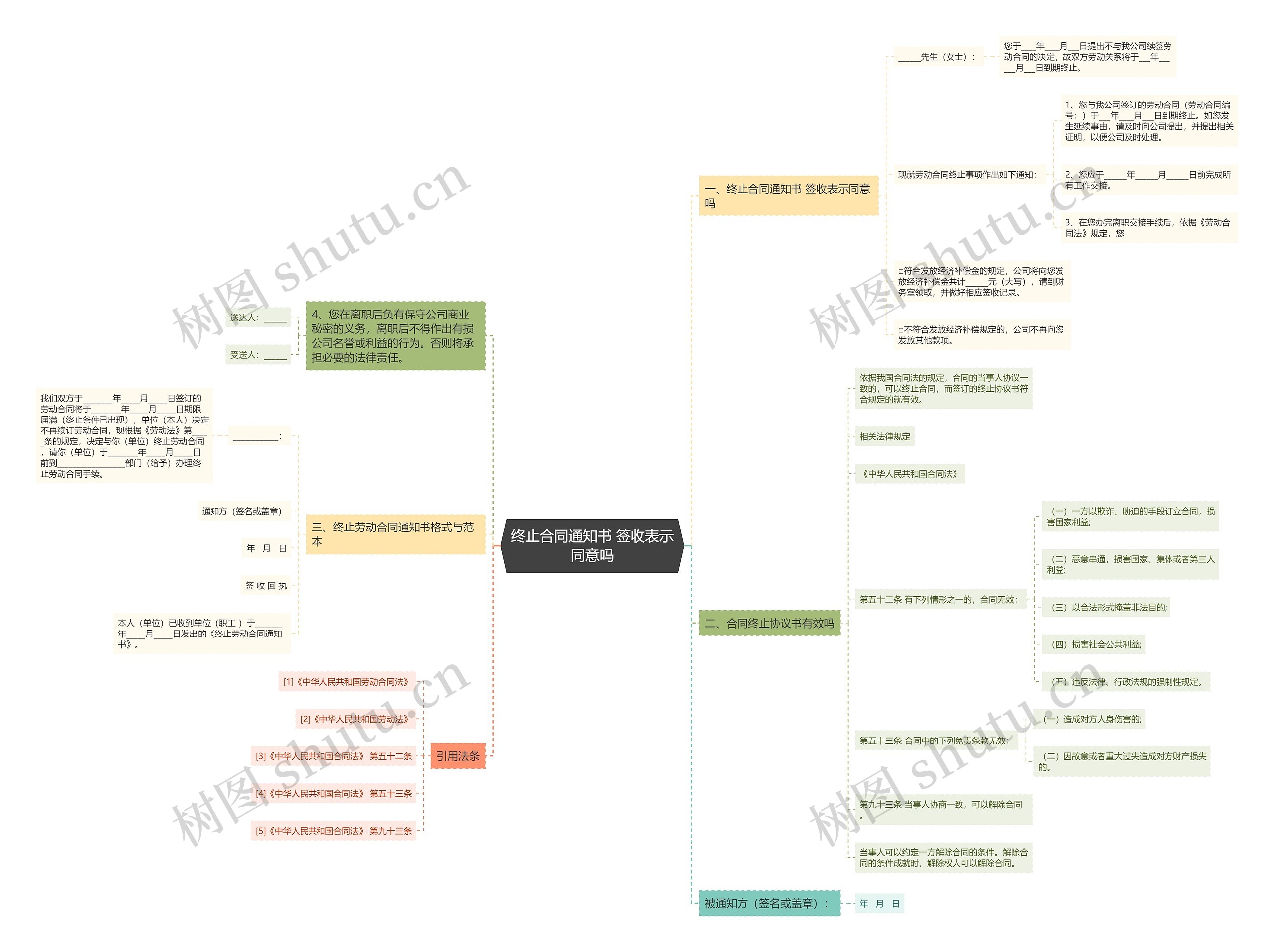 树图思维导图提供《终止合同通知书 签收表示同意吗》在线思维导图免费制作,点击“编辑”按钮,可对《终止合同通知书 签收表示同意吗》进行在线思维导图编辑,本思维导图属于思维导图模板主题,文件编号是:30e40c74a6feb8c7994a3fb81bac1b3f