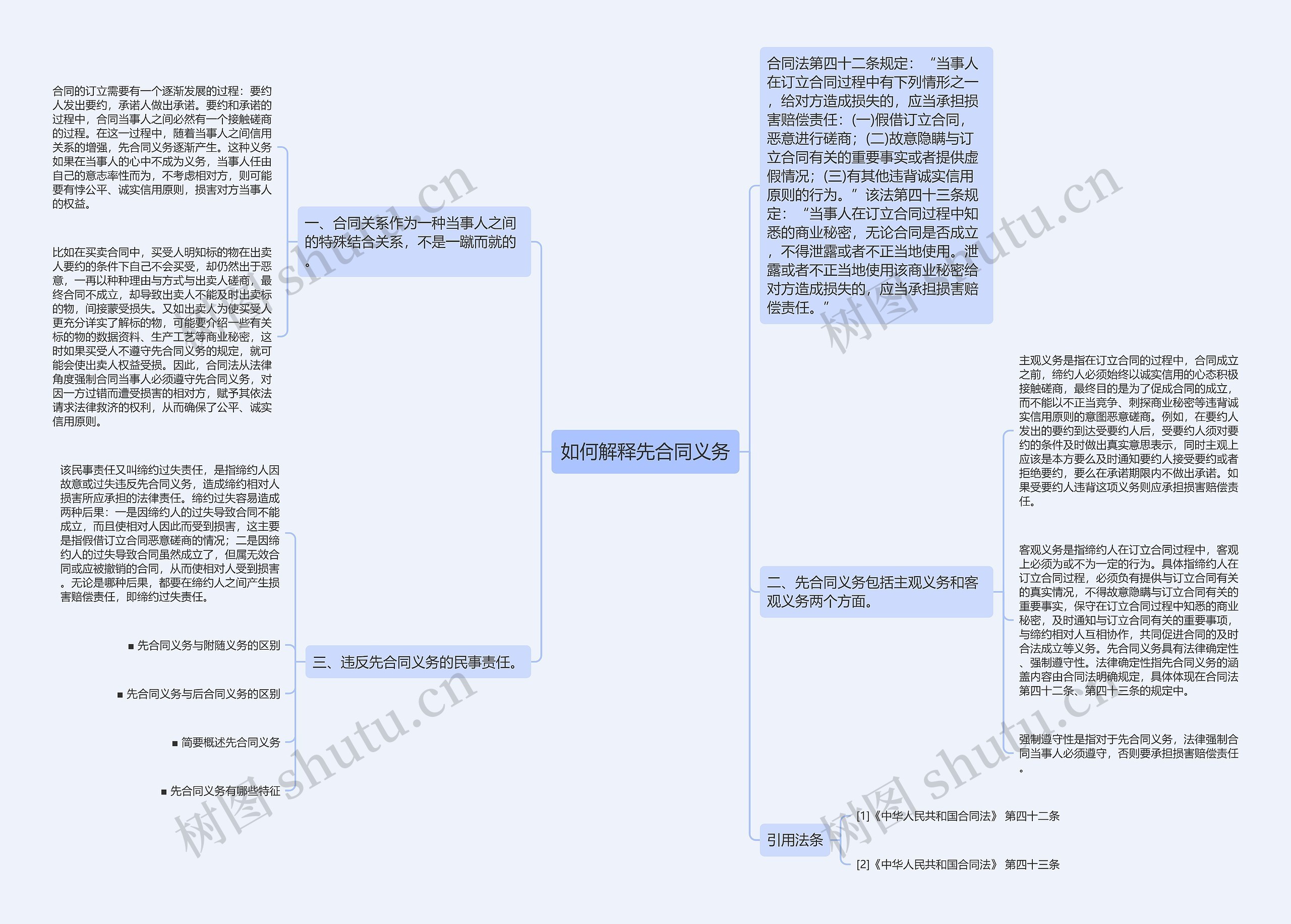 树图思维导图提供《如何解释先合同义务》在线思维导图免费制作,点击“编辑”按钮,可对《如何解释先合同义务》进行在线思维导图编辑,本思维导图属于思维导图模板主题,文件编号是:e33e37a574c2a97f02220e3deed19ded