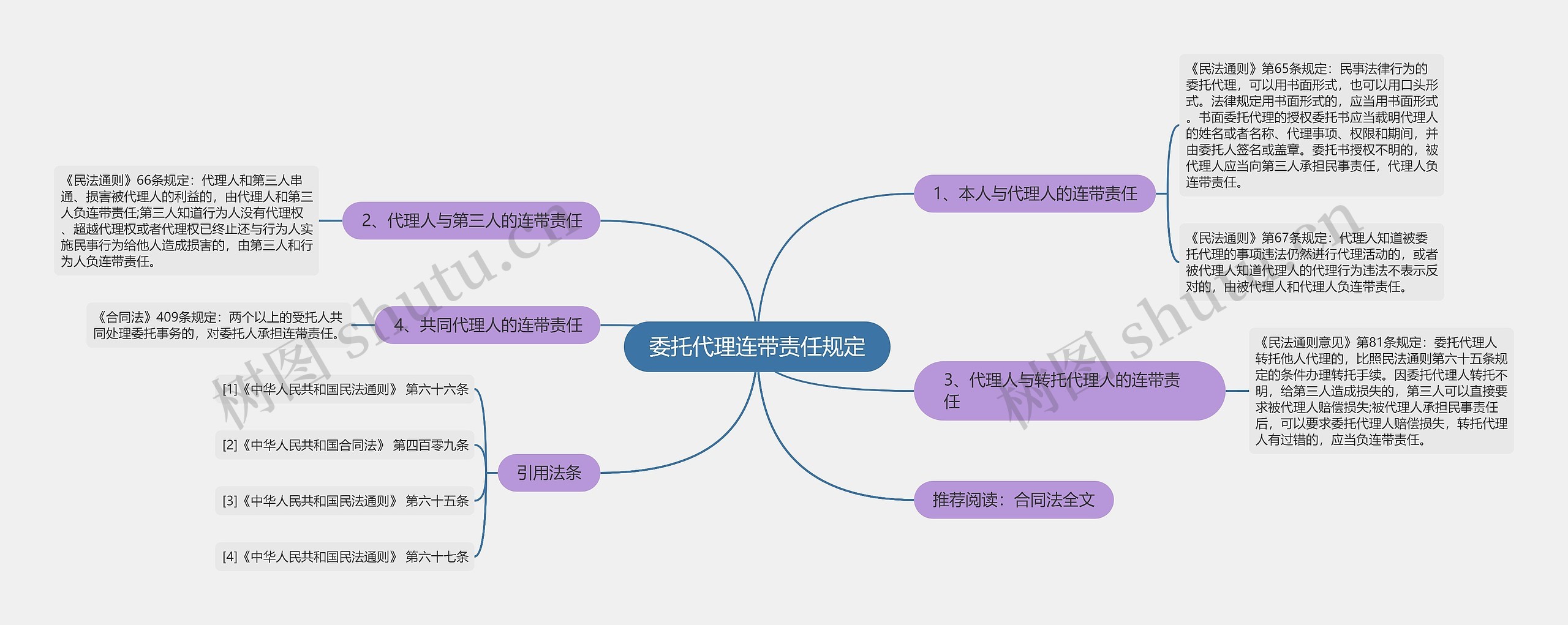 树图思维导图提供《委托代理连带责任规定》在线思维导图免费制作,点击“编辑”按钮,可对《委托代理连带责任规定》进行在线思维导图编辑,本思维导图属于思维导图模板主题,文件编号是:bd8d80c42451c2de8c8411da7337511f