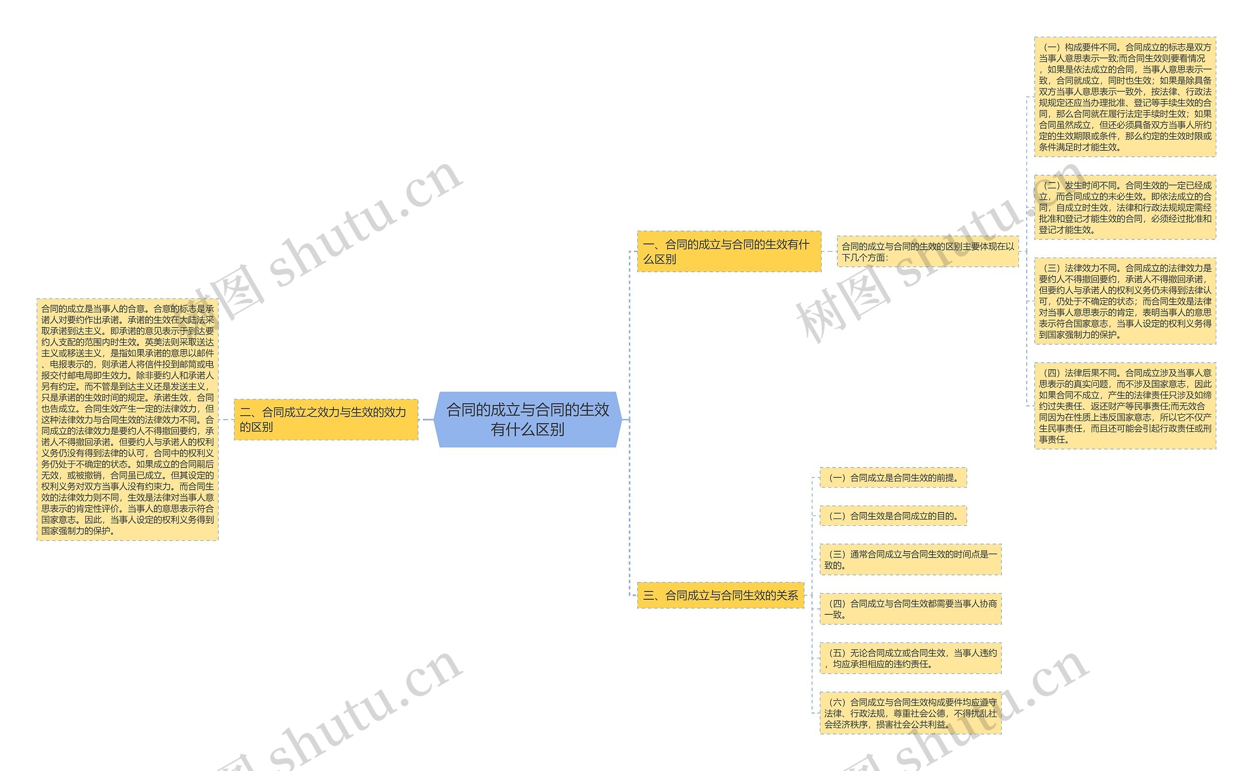(一)构成要件不同。合同成立的标志是双方当事人意思表示一致;而合同生效则要看情况,如果是依法成立的合同,当事人意思表示一致,合同就成立,同时也生效;如果是除具备双方当事人意思表示一致外,按法律、行政法规规定还应当办理批准、登记等手续生效的合同,那么合同就在履行法定手续时生效;如果合同虽然成立,但还必须具备双方当事人所约定的生效期限或条件,那么约定的生效时限或条件满足时才能生效。