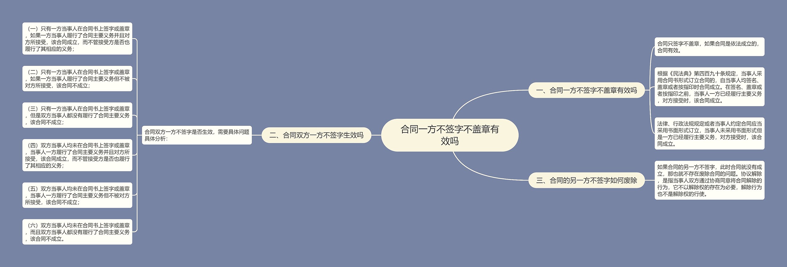 树图思维导图提供《合同一方不签字不盖章有效吗》在线思维导图免费制作,点击“编辑”按钮,可对《合同一方不签字不盖章有效吗》进行在线思维导图编辑,本思维导图属于思维导图模板主题,文件编号是:f001881a7b962530b3f9164ed4455063