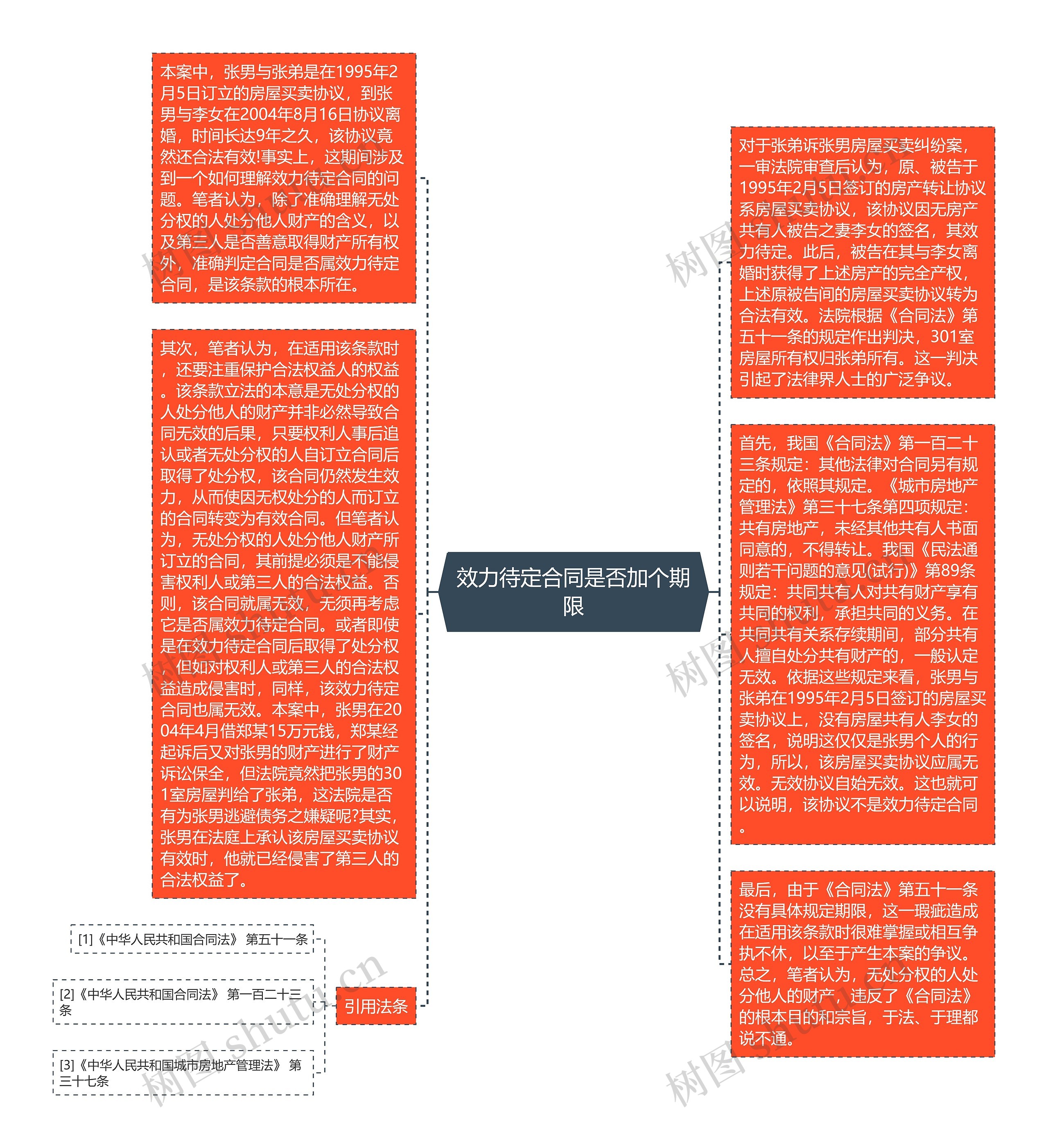本案中,张男与张弟是在1995年2月5日订立的房屋买卖协议,到张男与李女在2004年8月16日协议离婚,时间长达9年之久,该协议竟然还合法有效!事实上,这期间涉及到一个如何理解效力待定合同的问题。笔者认为,除了准确理解无处分权的人处分他人财产的含义,以及第三人是否善意取得财产所有权外,准确判定合同是否属效力待定合同,是该条款的根本所在。