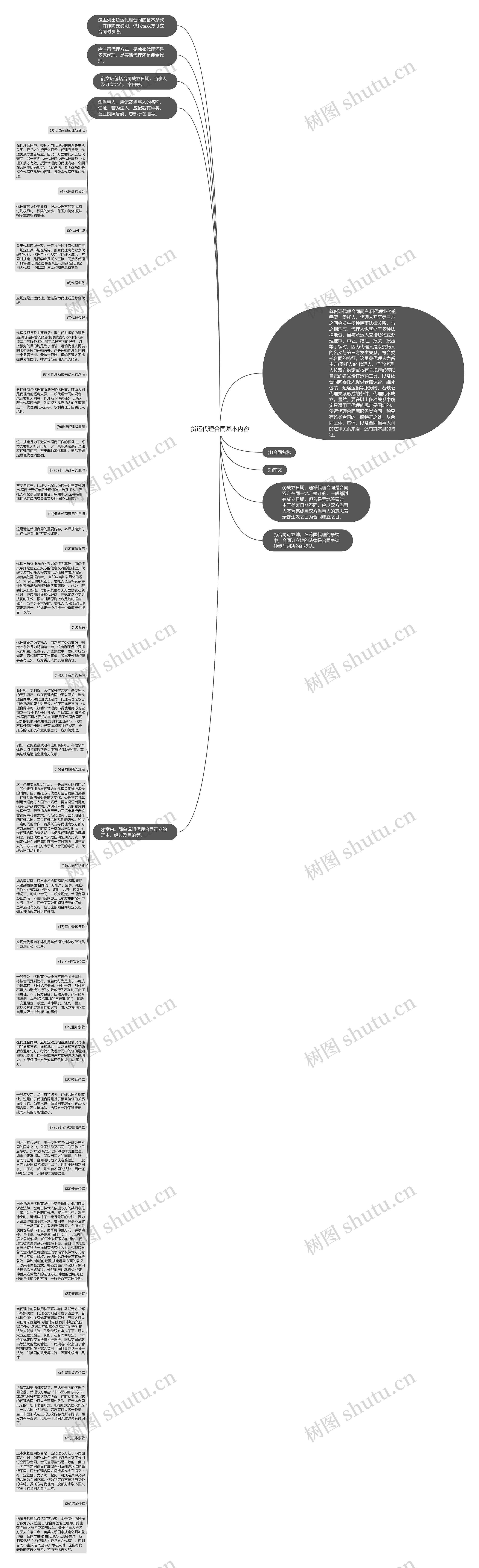 代理权限条款主要包括:提供代办运输的服务;提供仓储保管的服务;提供代办行政和财政手续费用的服务;提供加工承揽方面的服务,以上服务的目的均是为了运输。运输代理人提供的服务必须与运输有关,这是运输代理合同的一个显著特点。受这一限制,运输代理人不提提供诸如医疗、律师等与运输无关的服务。