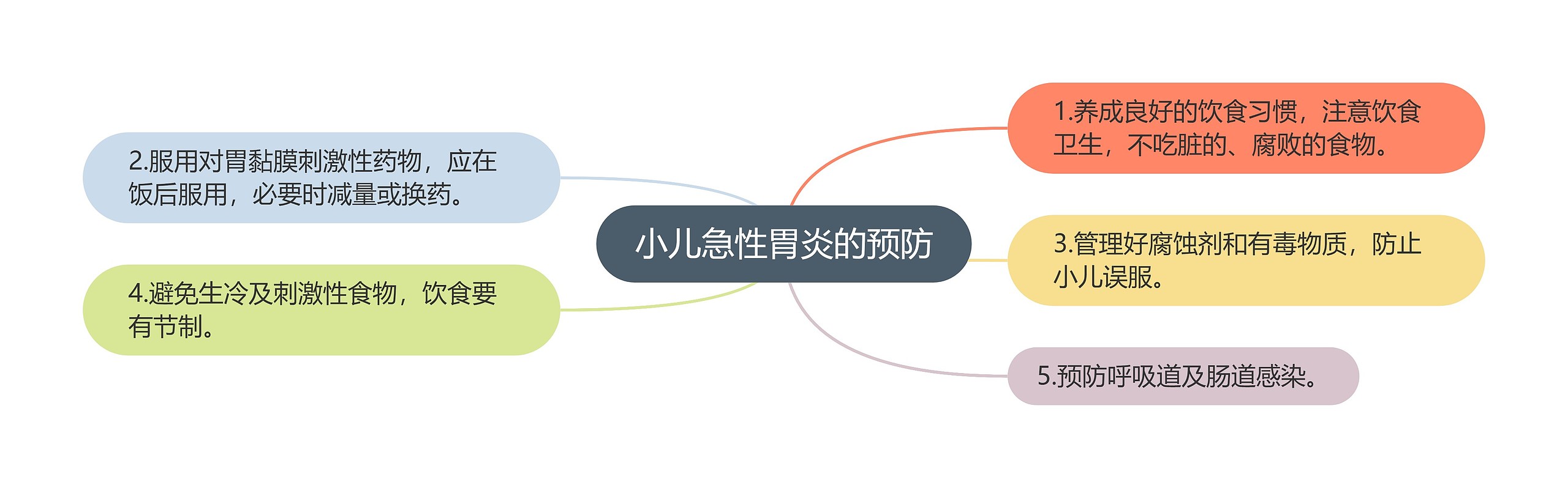 小儿急性胃炎的预防是什么?相信很多人感兴趣,为了帮助大家了解,树图思维导图编辑经过多方搜集整理有关内容如下: 1.养成良好的饮食习惯,注意饮食卫生,不吃脏的、腐败的食物。 2.服用对胃黏膜刺激性药物,应在饭后服用,必要时减量或换药。 3.管理好腐蚀剂和有毒物质,防止小儿误服。