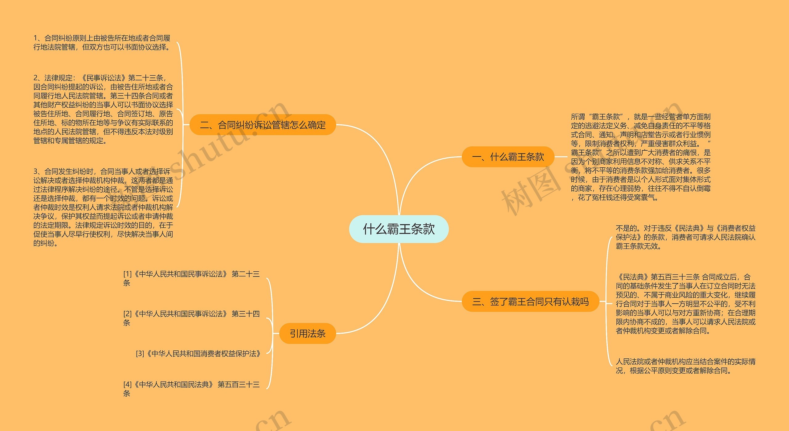 树图思维导图提供《什么霸王条款》在线思维导图免费制作,点击“编辑”按钮,可对《什么霸王条款》进行在线思维导图编辑,本思维导图属于思维导图模板主题,文件编号是:42ddf506ef3e145096f8d6bc5e359c20