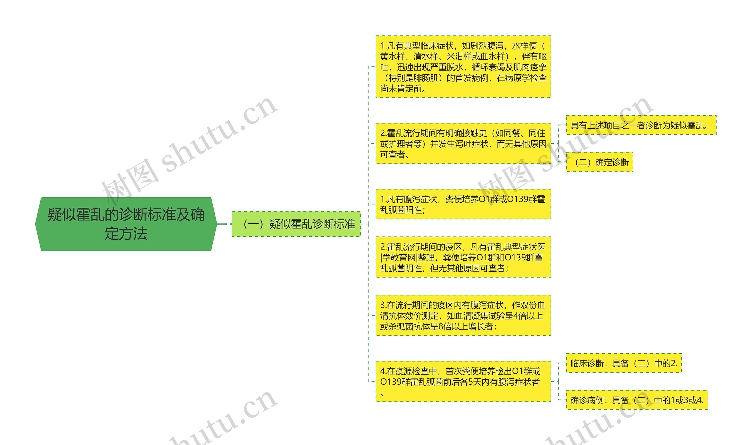 相信很多人会对疑似霍乱的诊断标准及确定方法比较感兴趣,为此,树图思维导图编辑特地为您准备了这篇关于疑似霍乱的诊断标准及确定方法的文章,希望对您有帮助。