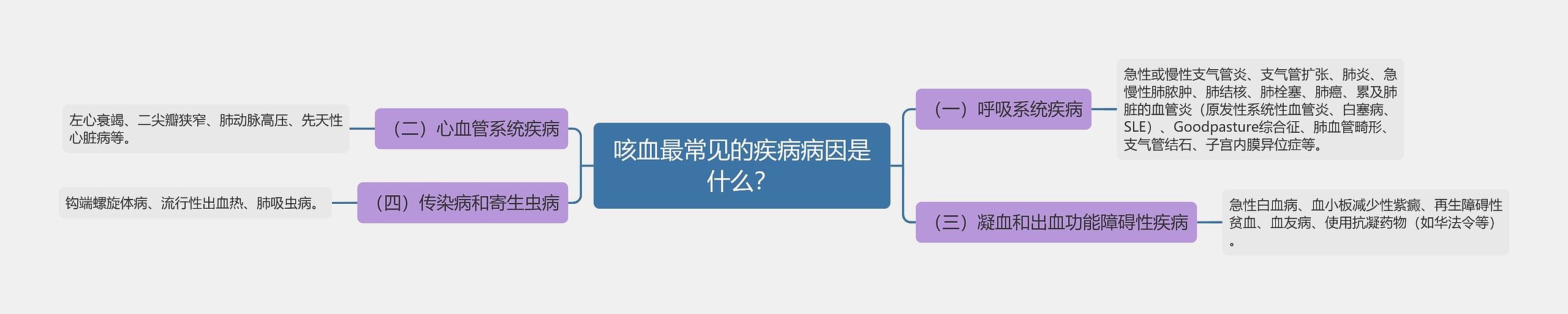 树图思维导图提供《咳血最常见的疾病病因是什么?》在线思维导图免费制作,点击“编辑”按钮,可对《咳血最常见的疾病病因是什么?》进行在线思维导图编辑,本思维导图属于思维导图模板主题,文件编号是:866c15e9b0cc64b664229d267e01bc27