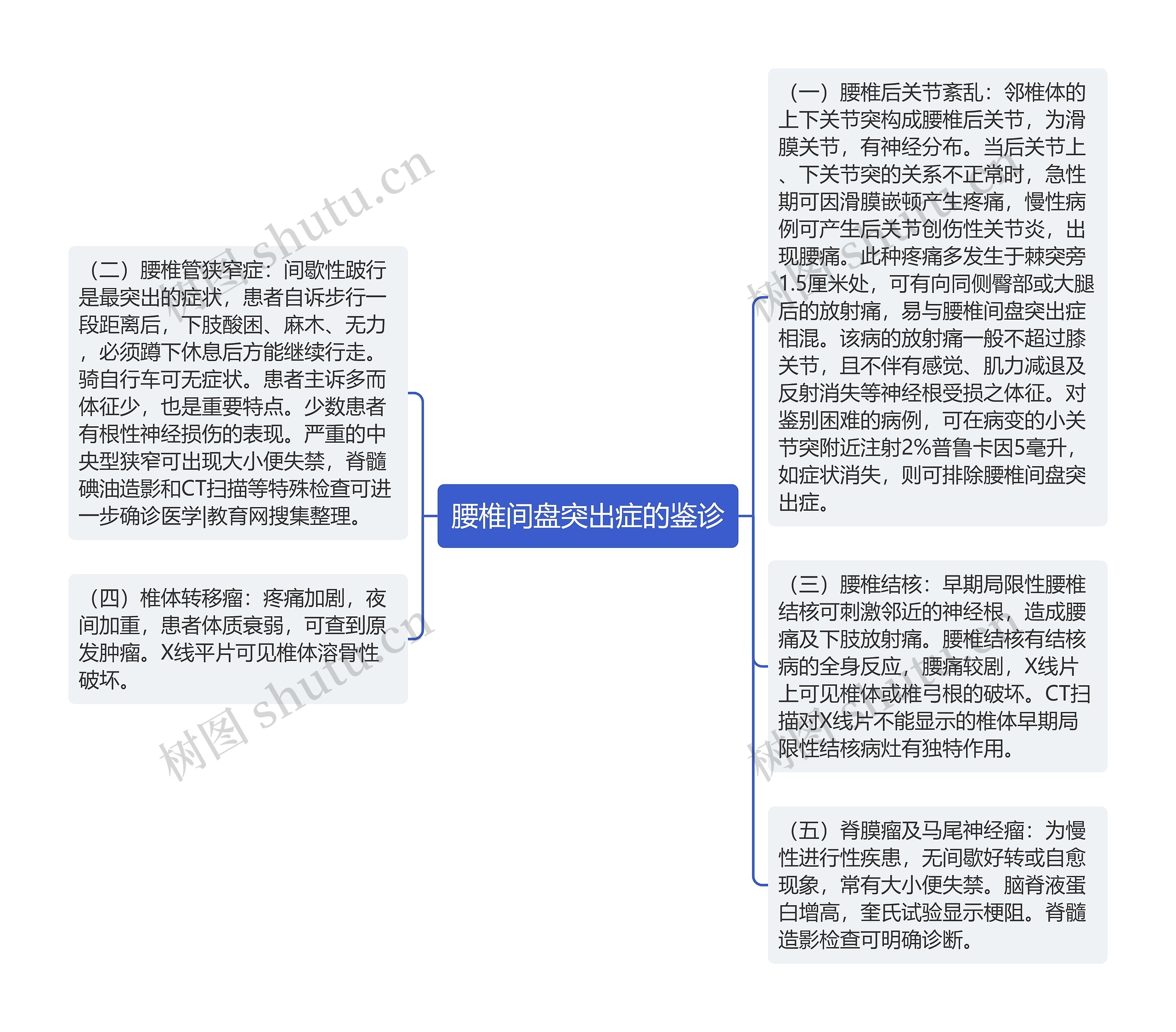 (一)腰椎后关节紊乱:邻椎体的上下关节突构成腰椎后关节,为滑膜关节,有神经分布。当后关节上、下关节突的关系不正常时,急性期可因滑膜嵌顿产生疼痛,慢性病例可产生后关节创伤性关节炎,出现腰痛。此种疼痛多发生于棘突旁1.5厘米处,可有向同侧臀部或大腿后的放射痛,易与腰椎间盘突出症相混。该病的放射痛一般不超过膝关节,且不伴有感觉、肌力减退及反射消失等神经根受损之体征。对鉴别困难的病例,可在病变的小关节突附近注射2%普鲁卡因5毫升,如症状消失,则可排除腰椎间盘突出症。