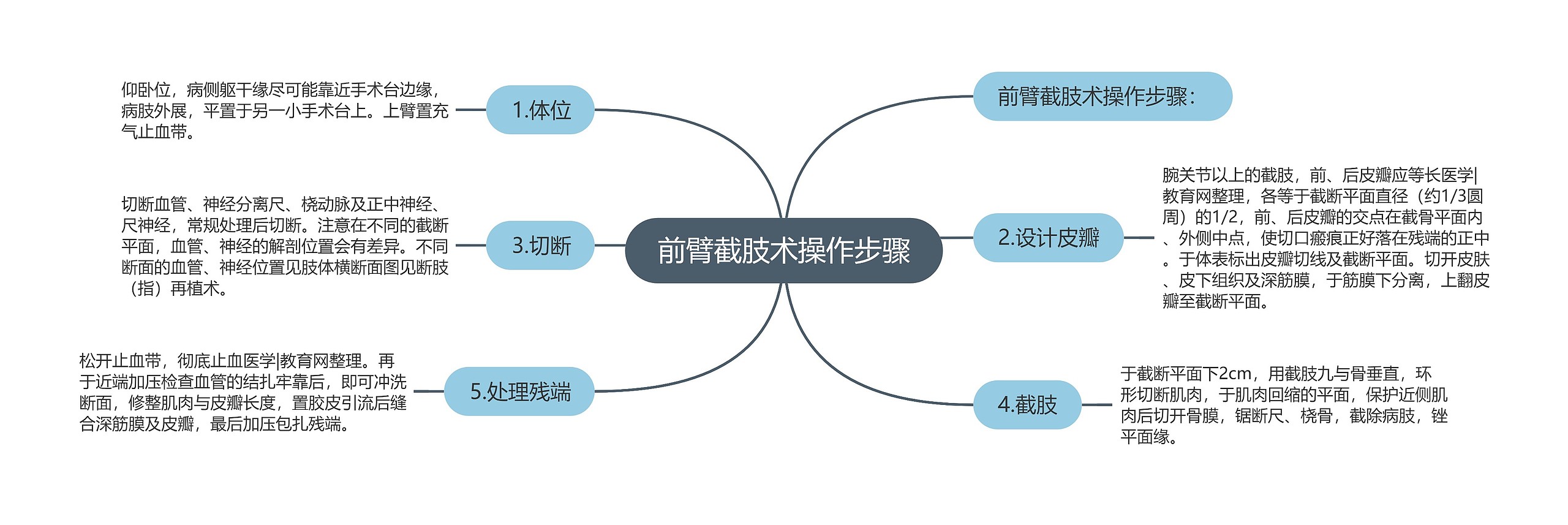 树图思维导图提供《前臂截肢术操作步骤》在线思维导图免费制作,点击“编辑”按钮,可对《前臂截肢术操作步骤》进行在线思维导图编辑,本思维导图属于思维导图模板主题,文件编号是:6d555d65e8be8b9d76c455c7a0b2ac19