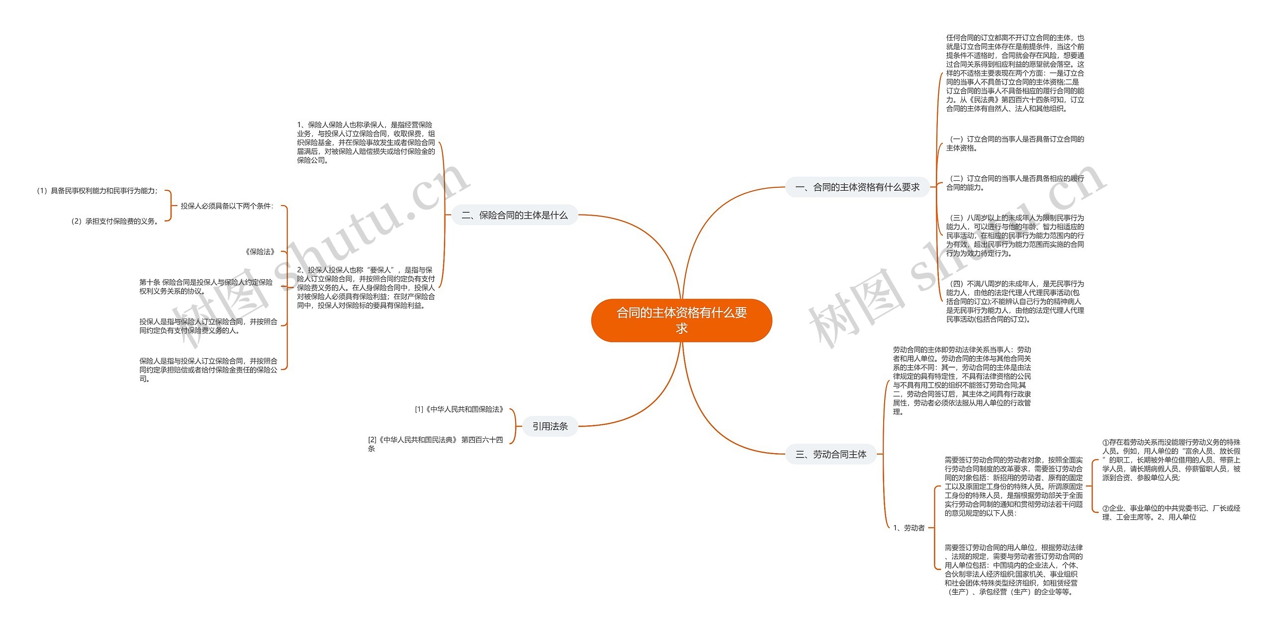 树图思维导图提供《合同的主体资格有什么要求》在线思维导图免费制作,点击“编辑”按钮,可对《合同的主体资格有什么要求》进行在线思维导图编辑,本思维导图属于思维导图模板主题,文件编号是:d2c9ef2ed66bed631965c9204eda13b8