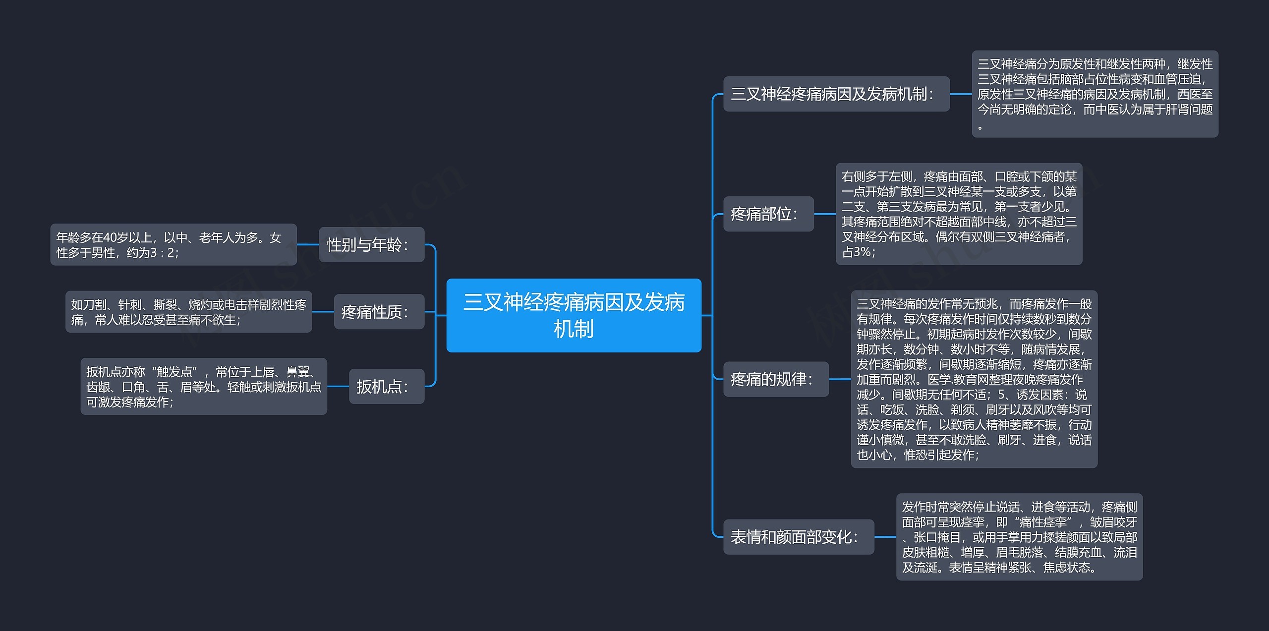 树图思维导图提供《三叉神经疼痛病因及发病机制》在线思维导图免费制作,点击“编辑”按钮,可对《三叉神经疼痛病因及发病机制》进行在线思维导图编辑,本思维导图属于思维导图模板主题,文件编号是:a30344b4dc8c3390bf529eba5fb33a47