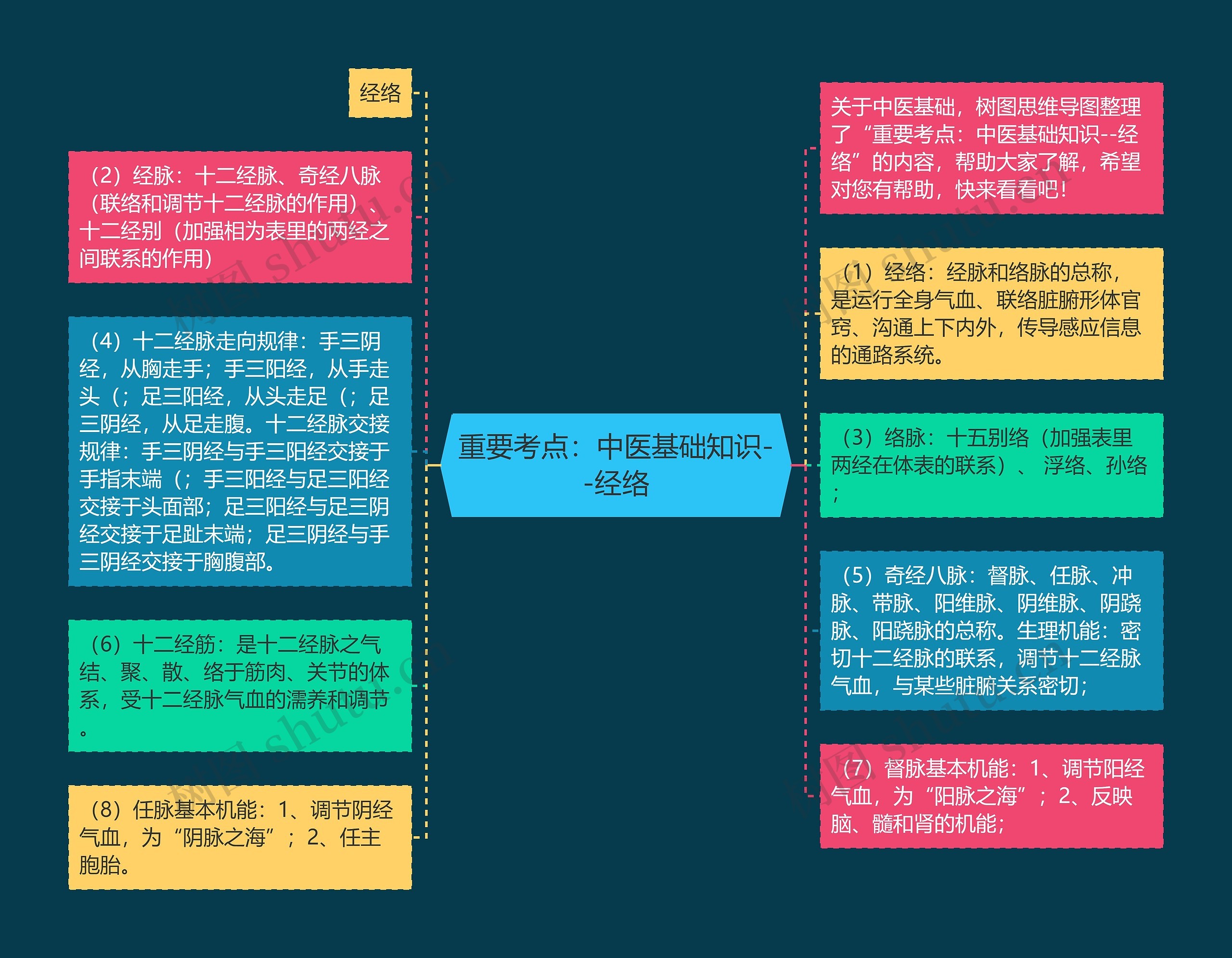 关于中医基础,树图思维导图整理了“重要考点:中医基础知识--经络”的内容,帮助大家了解,希望对您有帮助,快来看看吧!