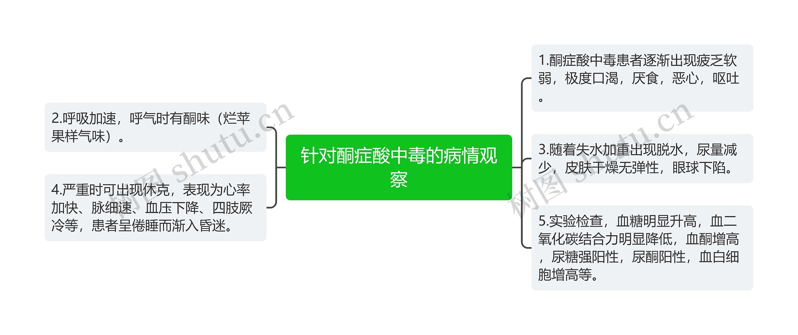 树图思维导图提供《针对酮症酸中毒的病情观察》在线思维导图免费制作,点击“编辑”按钮,可对《针对酮症酸中毒的病情观察》进行在线思维导图编辑,本思维导图属于思维导图模板主题,文件编号是:96b245544dcb188e075c6d449472bde9