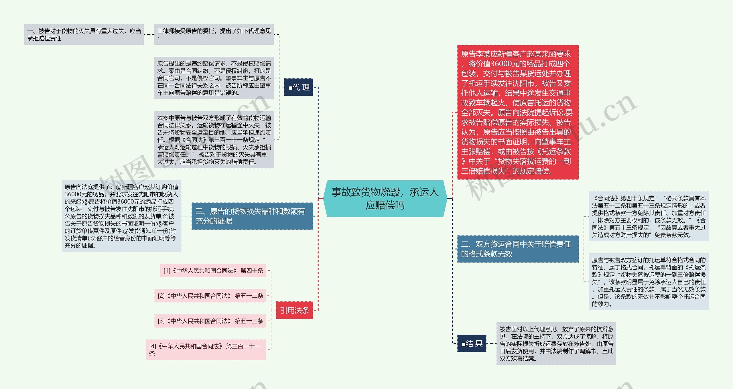 树图思维导图提供《事故致货物烧毁,承运人应赔偿吗》在线思维导图免费制作,点击“编辑”按钮,可对《事故致货物烧毁,承运人应赔偿吗》进行在线思维导图编辑,本思维导图属于思维导图模板主题,文件编号是:538ef42c22f0a20a691286b8cfc9315e