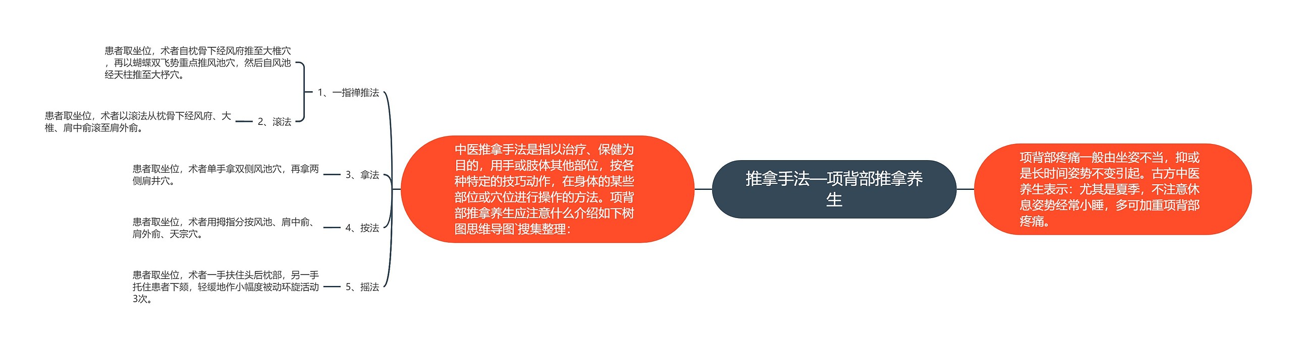 关于项背部推拿很多人还不是特别的了解,为了帮助大家了解项背部推拿,树图思维导图的小编特为您整理如下: 项背部疼痛一般由坐姿不当,抑或是长时间姿势不变引起。古方中医养生表示:尤其是夏季,不注意休息姿势经常小睡,多可加重项背部疼痛。