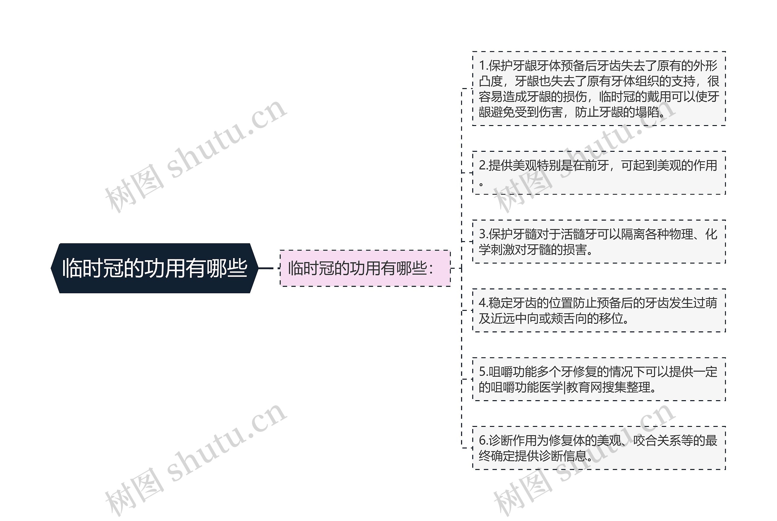 树图思维导图提供《临时冠的功用有哪些》在线思维导图免费制作,点击“编辑”按钮,可对《临时冠的功用有哪些》进行在线思维导图编辑,本思维导图属于思维导图模板主题,文件编号是:fb6bfeb30e0c21b0d0a20933c9409cb5
